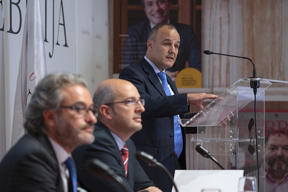 En el acto de clausura, celebrado en el Campus de Princesa, estuvieron presentes Fernando Tomé, decano de la Facultad de Ciencias Sociales de Nebrija, Santiago Molina, director de Programas Executive del Instituto Superior del Medio Ambiente, y José Antonio Gesto, socio director de Liken Carbon Hub.
