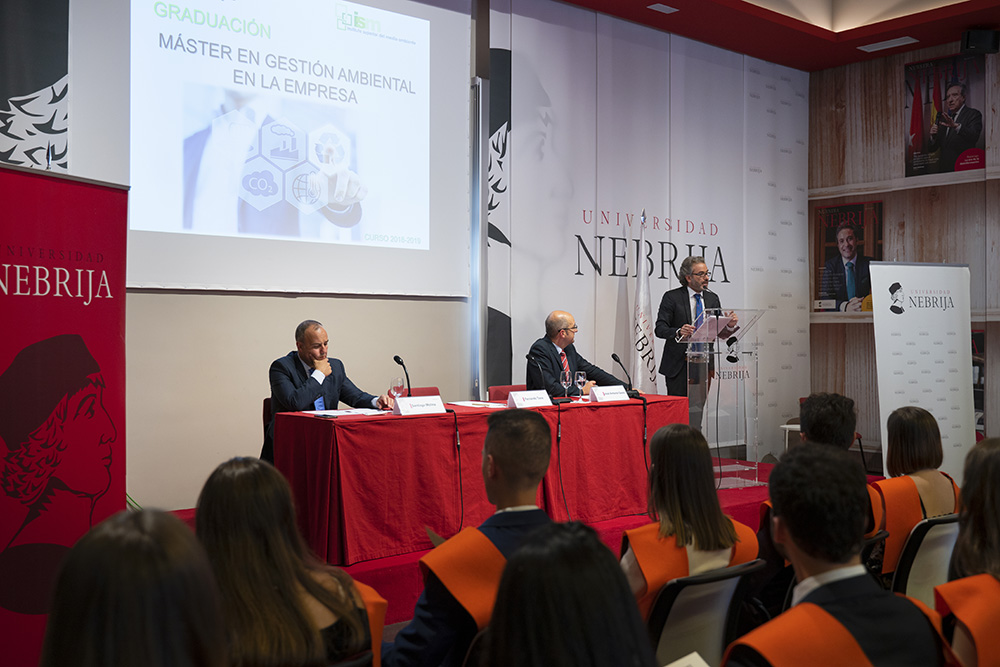 Los estudiantes del Máster en Gestión Ambiental de la Empresa, que organiza la Universidad Nebrija junto al Instituto Superior del Medio Ambiente, completaron su etapa universitaria tras recibir los diplomas que les acreditan como graduados.