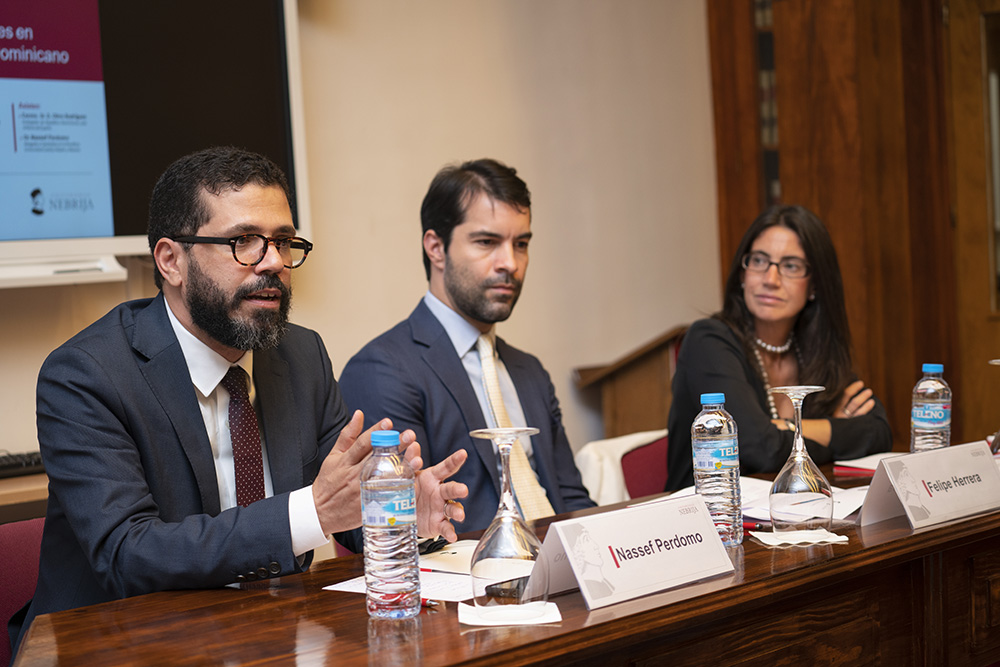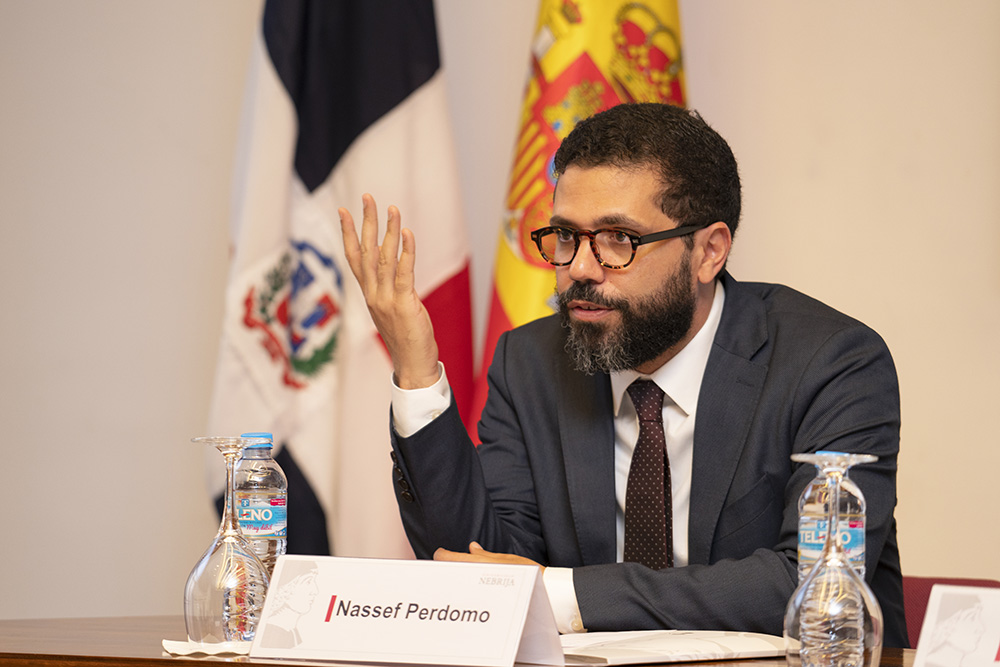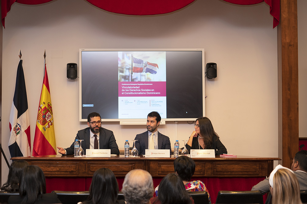 El abogado y catedrático en la Pontificia Universidad Católica Madre y Maestra de República Dominicana, Nassef Perdomo Cordero, impartió la conferencia “La vinculatoriedad de los derechos sociales en el constitucionalismo dominicano”. En ella, el abogado habló de algunas diferencias que existen entre la constitución dominicana y la española como es, la obligatoriedad de los derechos sociales en República Dominicana: “La constitución dominicana sostiene que los derechos sociales son fundamentales y exigibles en la misma manera que los derechos de primera generación”.