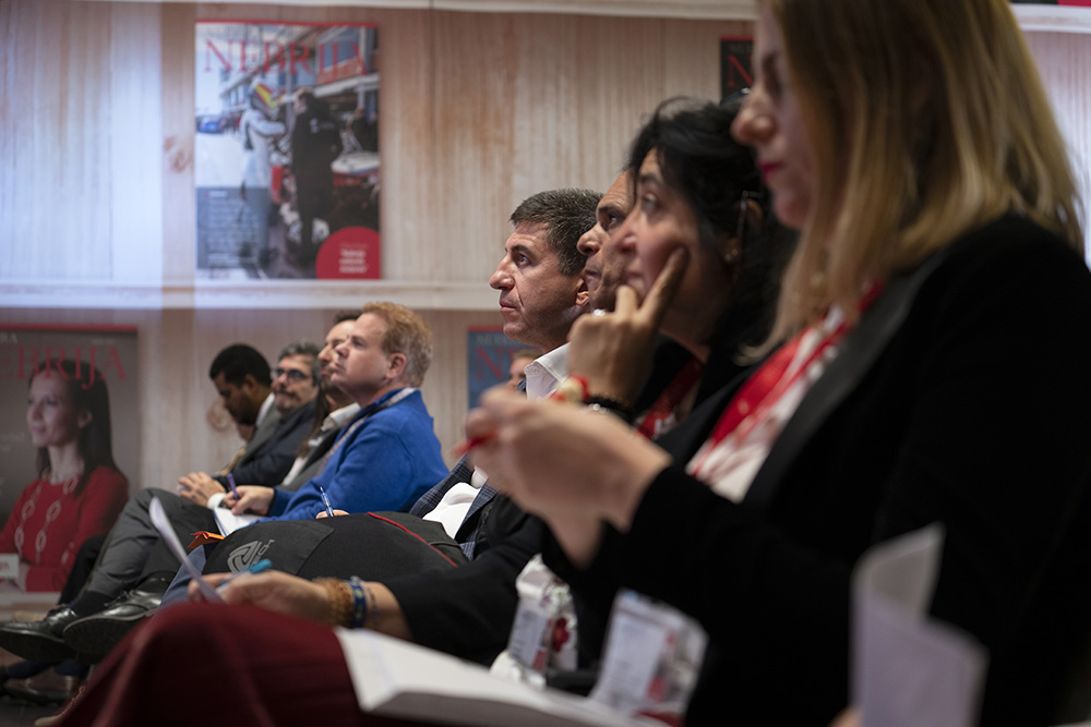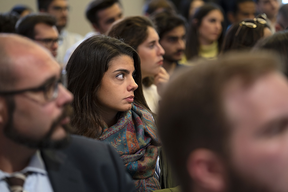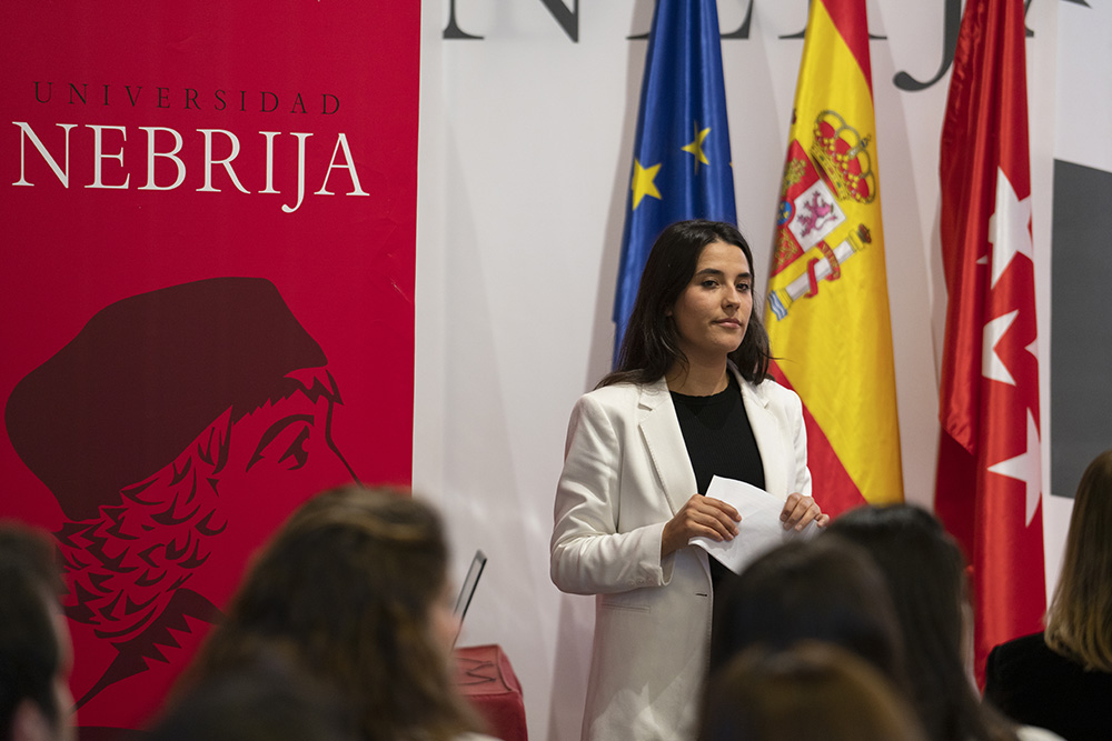 Después de la intervención de Tomé, Aldara Pereira y Carlota López presentaron el Club Alumni Nebrija a los nuevos estudiantes de los másteres en el que pueden disfrutar de asesoramiento personalizado, crear sinergias con egresados de la Universidad y profesionales del sector que les interese, y participar en los eventos de los campus. “No paséis de puntillas por aquí, sed listos y utilizadnos”, espetaron.