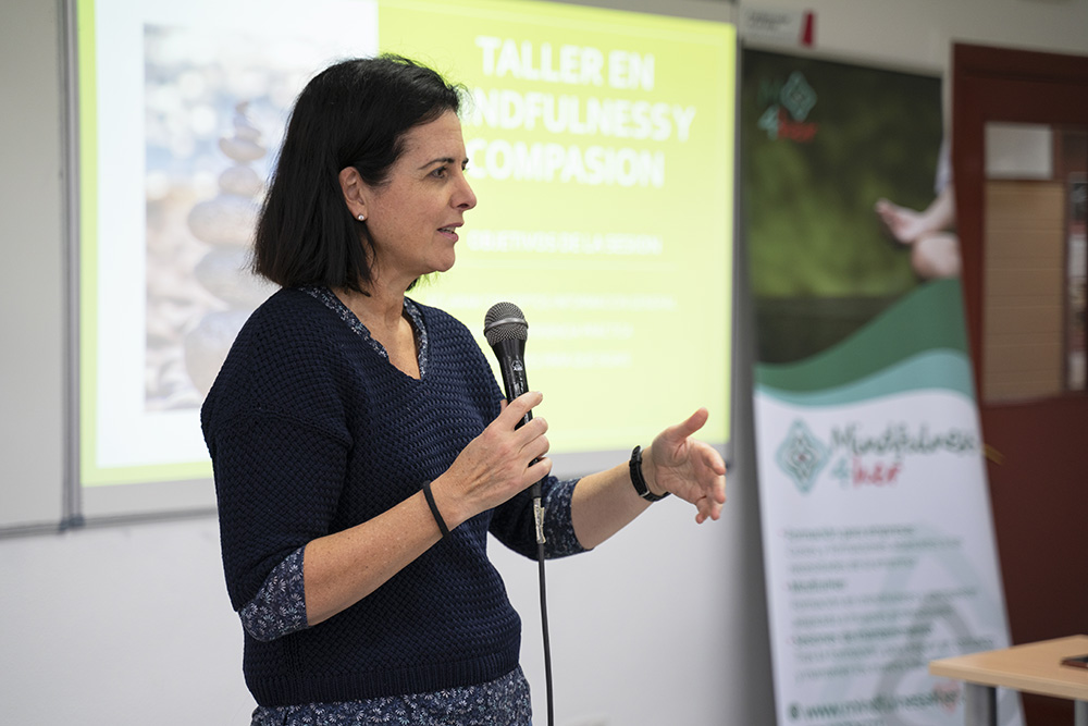 La experta hizo una distinción entre la compasión y la pena. Para Cebrián la compasión es “tener empatía, tener una apertura personal al sufrimiento personal y al del otro unido a una voluntad de querer reducir el sufrimiento” y animó a todas las asistentes a practicarlo.