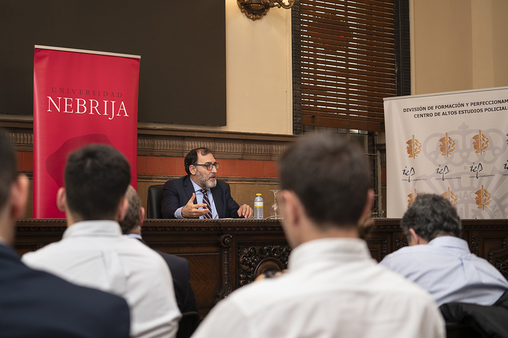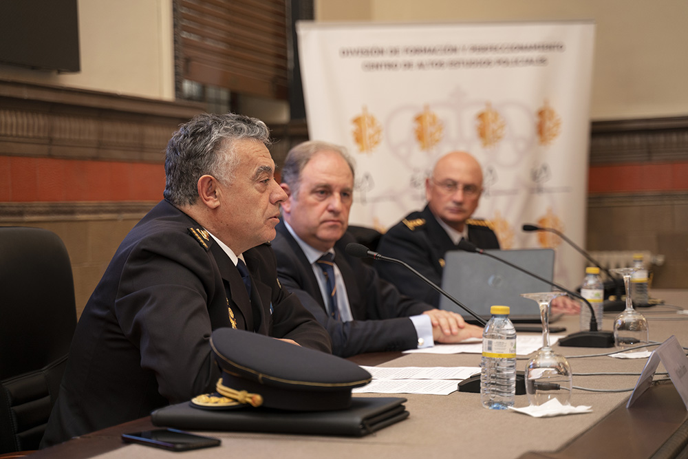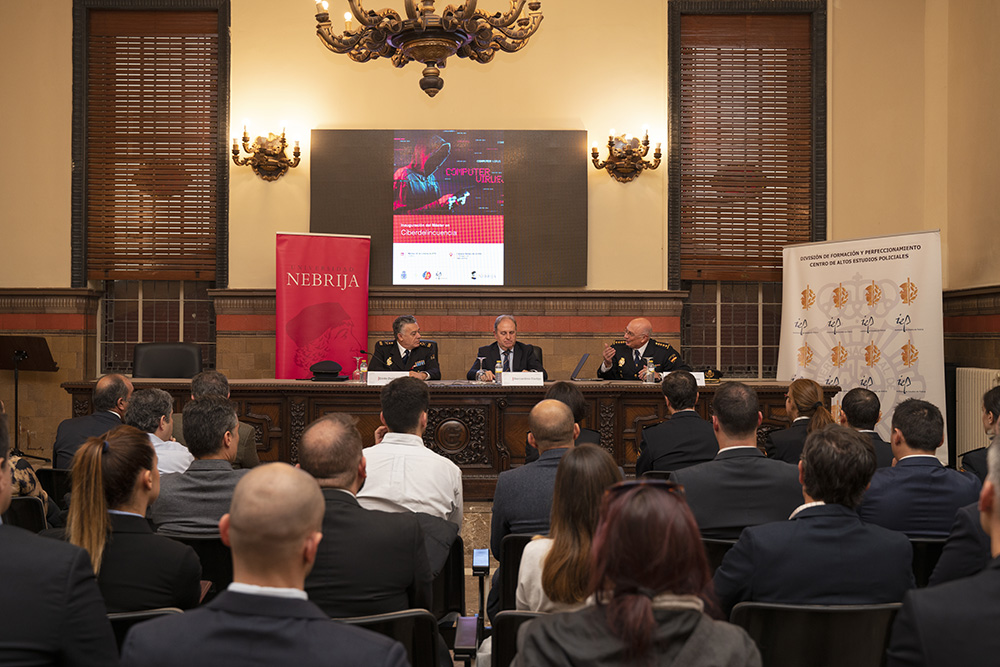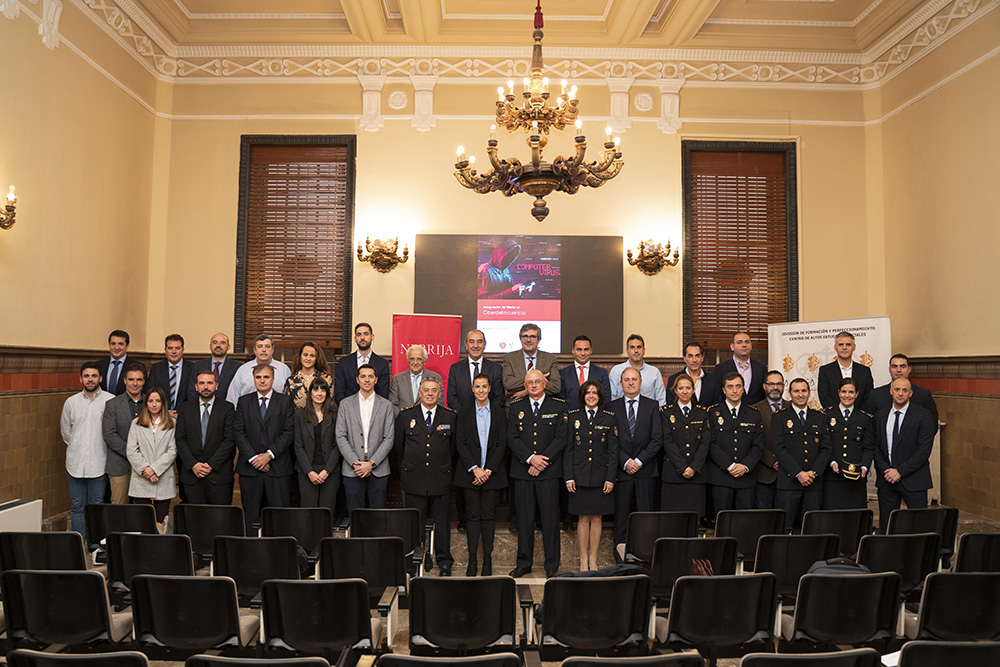 Los ataques cibernéticos son una amenaza a la que las fuerzas del Estado hacen frente diariamente y para la que una formación actualizada es fundamental. Esto es lo que ofrece el Máster en Ciberdelincuencia cuya cuarta edición fue inaugurada con la presencia de Bernardino Cortijo, director del Máster; Mario Hernández Lores, director gerente de la Fundación Policía y secretario general de la División de Formacion y Perfeccionamiento; Cirio Durán Reguero, comisario principal y jefe de la División de Formación y Perfeccionamiento y Eloy Velasco, magistrado de la Audiencia Provincial, quien ha dado la lección magistral del acto.