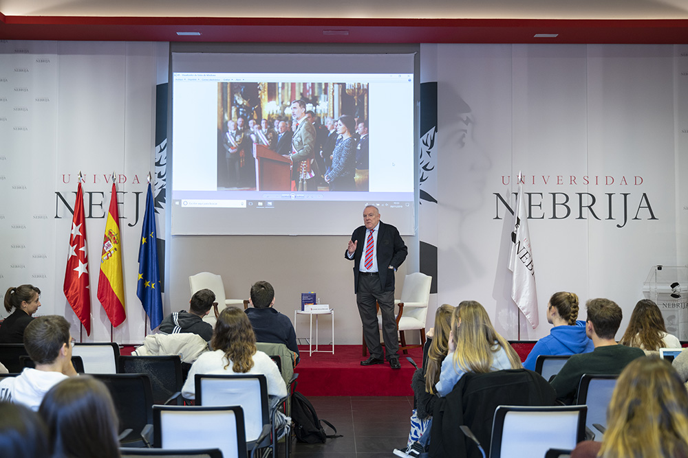 “Vivimos en una sociedad paradójica, considerada antiritualista porque se han roto muchos cánones, reglas y comportamientos, aparentemente somos más libres, pero a la vez es una sociedad más controlada y esclavizada”. Así comenzaba Fernando García-Mercadal, profesor del Grado en Comunicación Corporativa, Protocolo y Organización de Eventos la presentación de su libro Los símbolos políticos, el ceremonial y las distinciones oficiales del Reino de España.