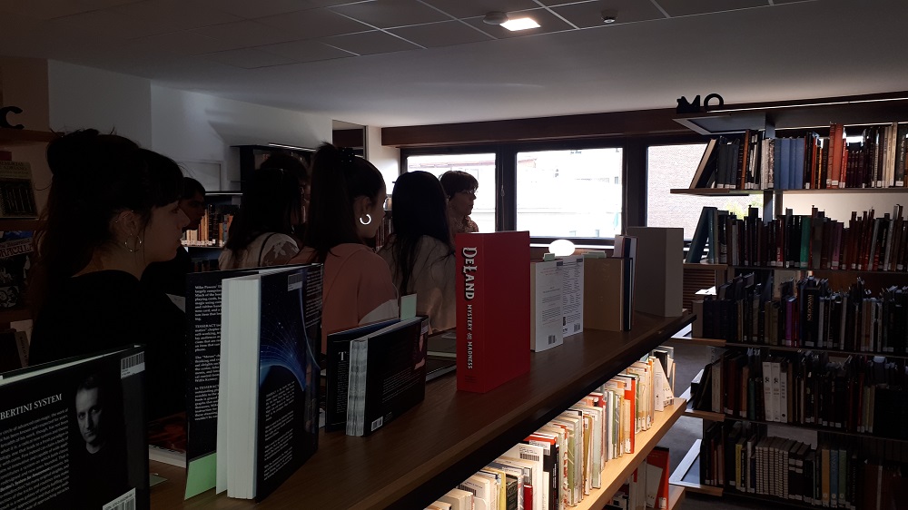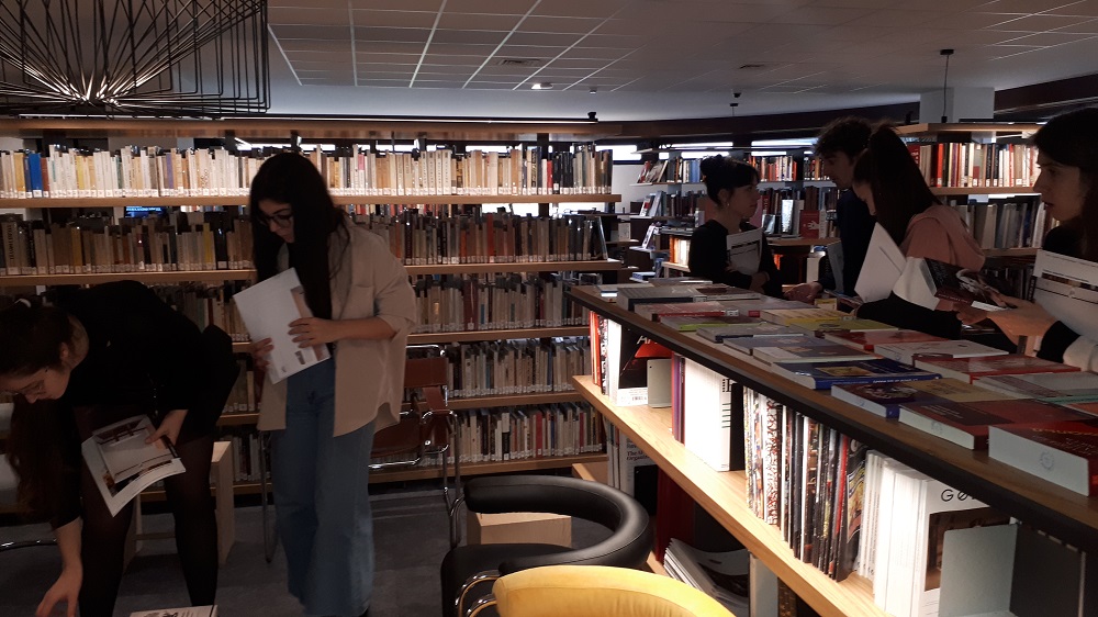 Los alumnos del Grado en Artes Escénicas han asistido a una visita guiada en la Biblioteca de la Fundación Juan March como actividad de la asignatura de Didáctica de las Artes Escénicas junto a su profesora, Tania Ugena; la Directora de la Biblioteca, Paz Fernández y la responsable de publicaciones sobre Artes Escénicas de la Biblioteca, Celia Martínez.