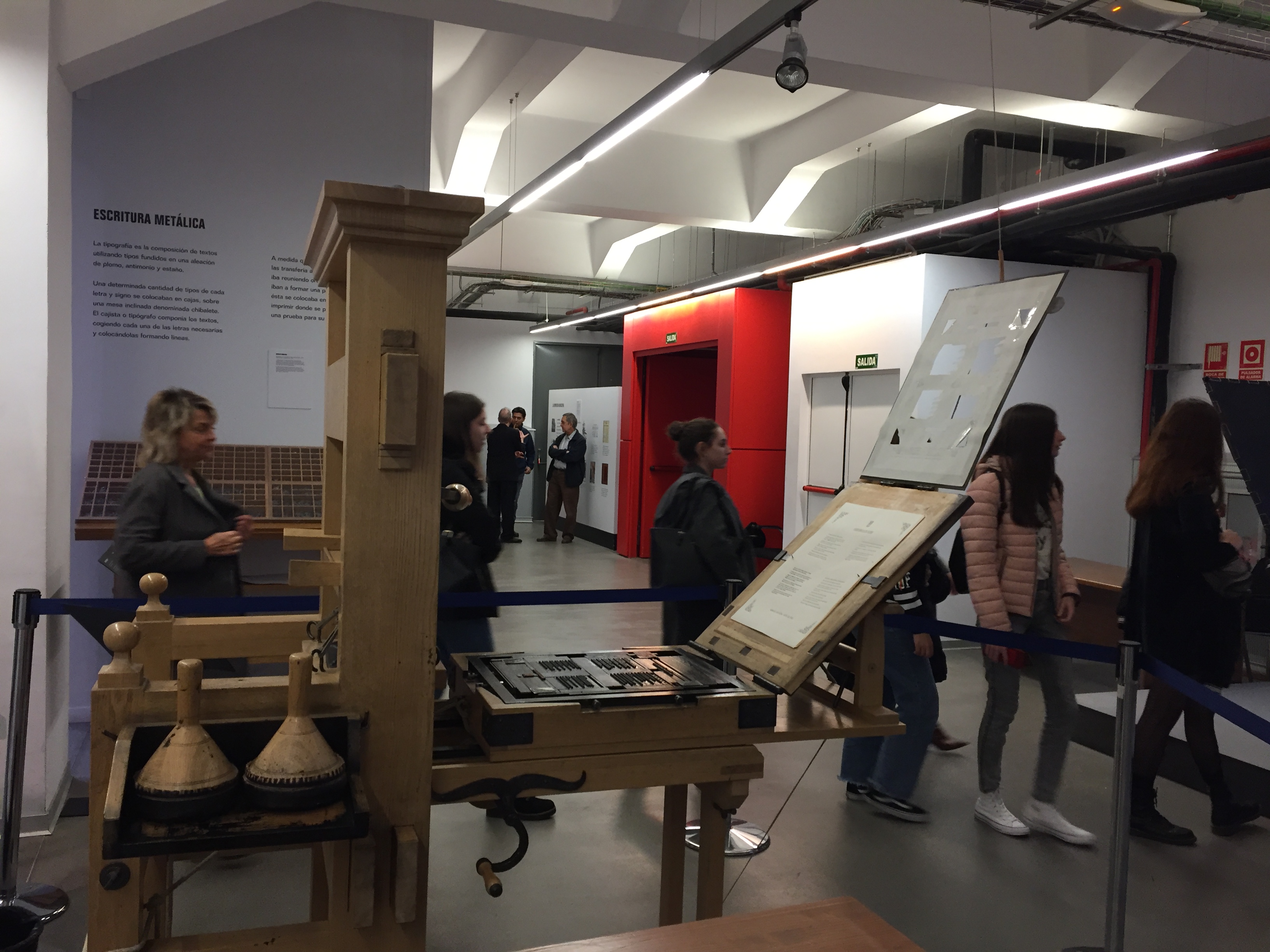Aprovechando la visita guiada, aquellos que quisieron pudieron disfrutar de la exposición “Alfabetos mágicos: Cien años con Hermann & Gudrun Zapf”, que conmemora el centenario de esta pareja de artistas, especialistas en caligrafía, diseño de tipografías y encuadernación de libros. Archiconocidas son sus fuentes Palatino, Optima o Zapfino entre las doscientas fuentes tipográficas que diseñó el gran Hermann Zapf a lo largo de su vida, muchas de las cuales utilizamos a diario en nuestros trabajos porque se han pasado después a su formato digital. La exposición puede visitarse hasta el próximo 12 de diciembre.