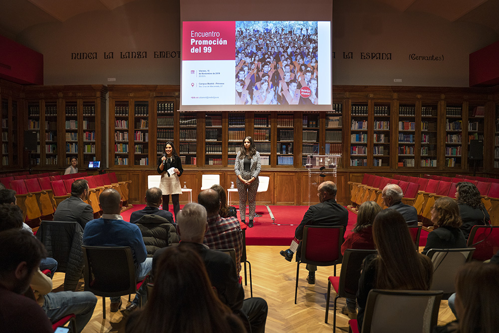 Después subió al estrado Manuel Villa-Cellino, presidente de la Fundación Antonio de Nebrija, del Consejo Rector de la Universidad Nebrija y primer rector de la institución, que departió sobre cómo ha cambiado el centro de enseñanza superior en el que habían estudiado los alumnos de la promoción del 99 y sobre los proyectos futuros de una Universidad “que piensa de cien años en adelante y que se hace entre todos”.