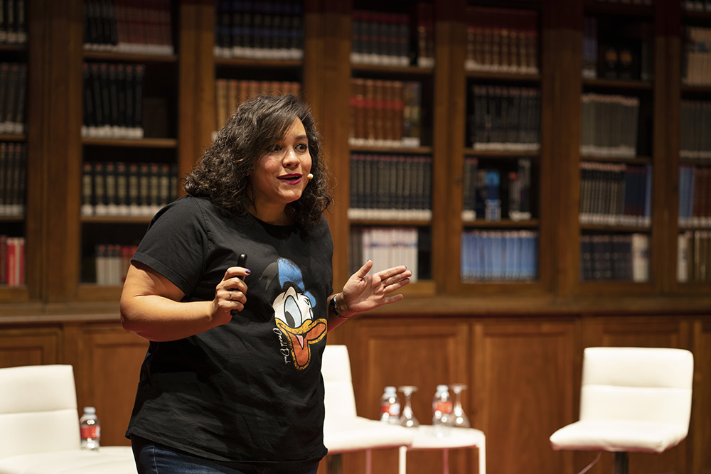 Hace veinte años, según Mery, para elaborar un trabajo de clase “nos documentábamos en papel y nos pasábamos las horas en las bibliotecas”. Enfundada en una camiseta del Pato Donald, la directora creativa, de raíces nebrijanas, contextualizó 1999, el año del estreno de películas como Matrix o El Club de la Lucha, “cuando prácticamente ninguno teníamos teléfono móvil y solo el 5% de los españoles tenía acceso a internet”.
