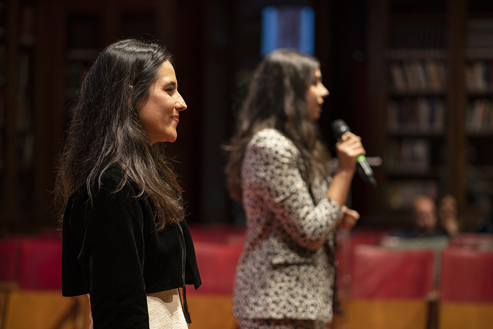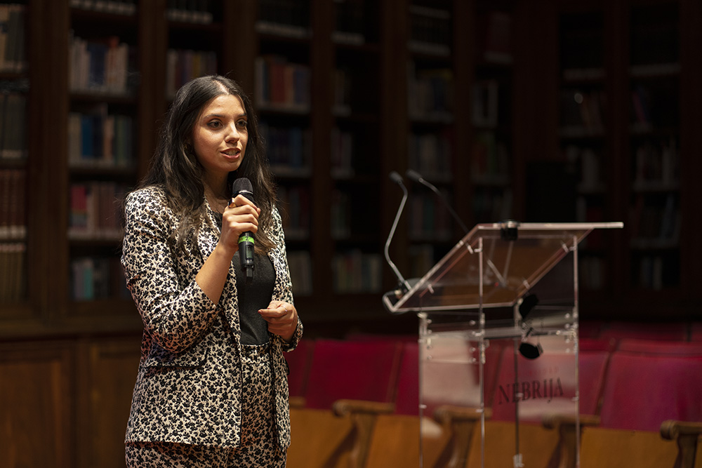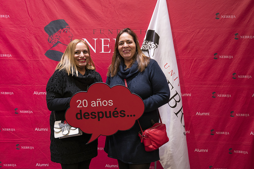 Desde el Club Alumni Nebrija, Aldara Pereira y Carlota López rompieron el hielo con un alegato a los egresados a continuar ligados a la Universidad Nebrija: “En veinte años han ocurrido muchas cosas en vuestras vidas; queremos saber cuáles son vuestros sueños y los que vais a cumplir con ayuda de la Universidad”.