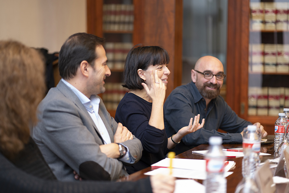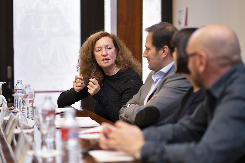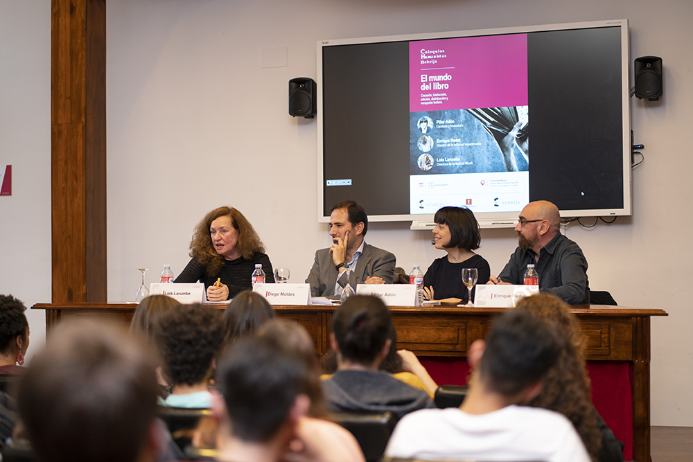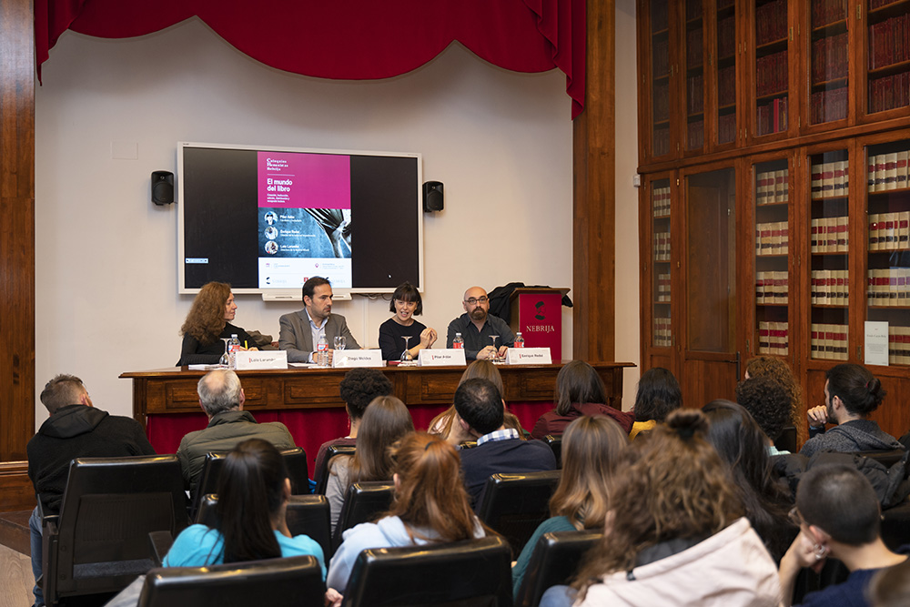 La Fundación Antonio de Nebrija ha puesto en marcha una serie de coloquios humanistas que reúne a expertos y profesionales de distintas industrias culturales. El primero de ellos giró en torno a la industria editorial y congregó a la escritora y traductora Pilar Adón, el director de la Editorial Impedimenta, Enrique Redel y Lola Larumbe, responsable de la librería Alberti. Este tipo de coloquios pretende transmitir a los alumnos “la pasión por la cultura de la mano de profesionales que viven el día a día del sector”, explicó Diego Moldes, director de Relaciones Institucionales de la Fundación Antonio de Nebrija.