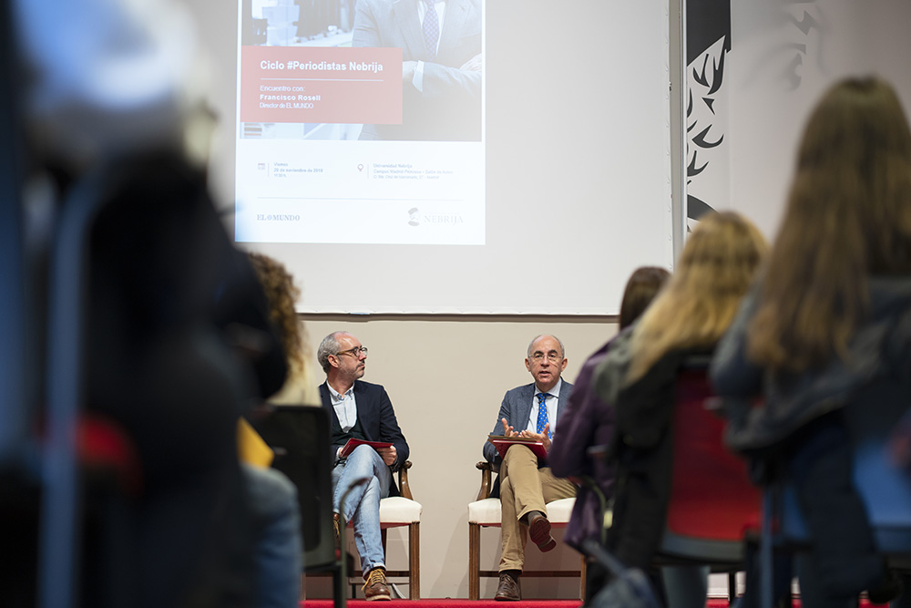 Interpelado por Eduardo Castillo, profesor de Periodismo y responsable de los talleres de radio del Club MediaLab de la Universidad Nebrija, y atento a la audiencia joven, Francisco Rosell recomendó a los futuros periodistas formarse, tener “empeño y tenacidad” a la hora de perseguir la noticia y hacer preguntas “incómodas e impertinentes en el sentido de ir al fondo de las cosas”. Con ese empuje, definió el periodismo como “un oficio de muchísima exigencia” y como “la forma más apasionante de vivir la libertad”.