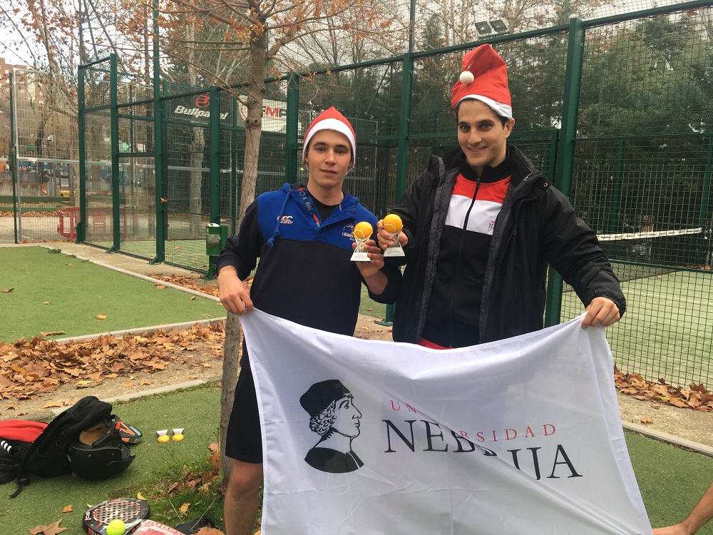 El primer torneo en celebrarse ha sido el de pádel, en las pistas de la Federación Madrileña en las Instalaciones Canal de Isabel II, con un total de 24 parejas de distintos Campus que durante tres horas fueron disputando los partidos que configuraban el cuadro de juego. Los ganadores del Torneo Navideño Club de Pádel Nebrija 2019 fuero:
