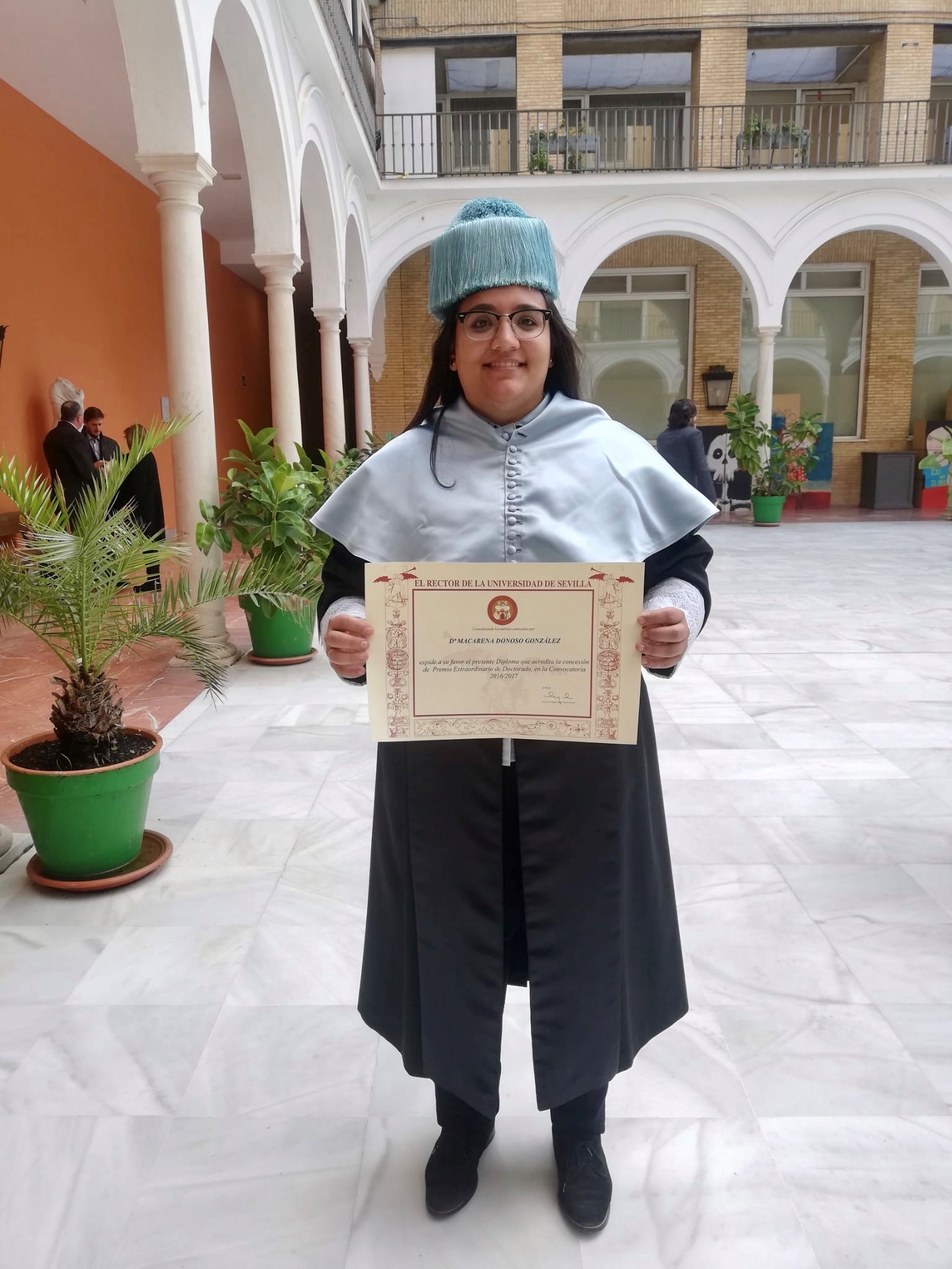 La profesora Macarena Donoso ha sido galardonada con Premio Extraordinario de Doctorado en la Universidad de Sevilla. El premio reconoce su trabajo en su tesis “Evaluación de la educación emprendedora en la adolescencia. Incidencia del programa Ícaro en la identidad emprendedora” que realizó con el catedrático Antonio Bernal Guerrero como director y bajo el “amparo” de una Beca FPU otorgada por el Ministerio de Educación y de el Proyecto I+D “Educar para Emprender: Evaluando Programas para la Formación de la Identidad Emprendedora en la Educación Obligatoria”.