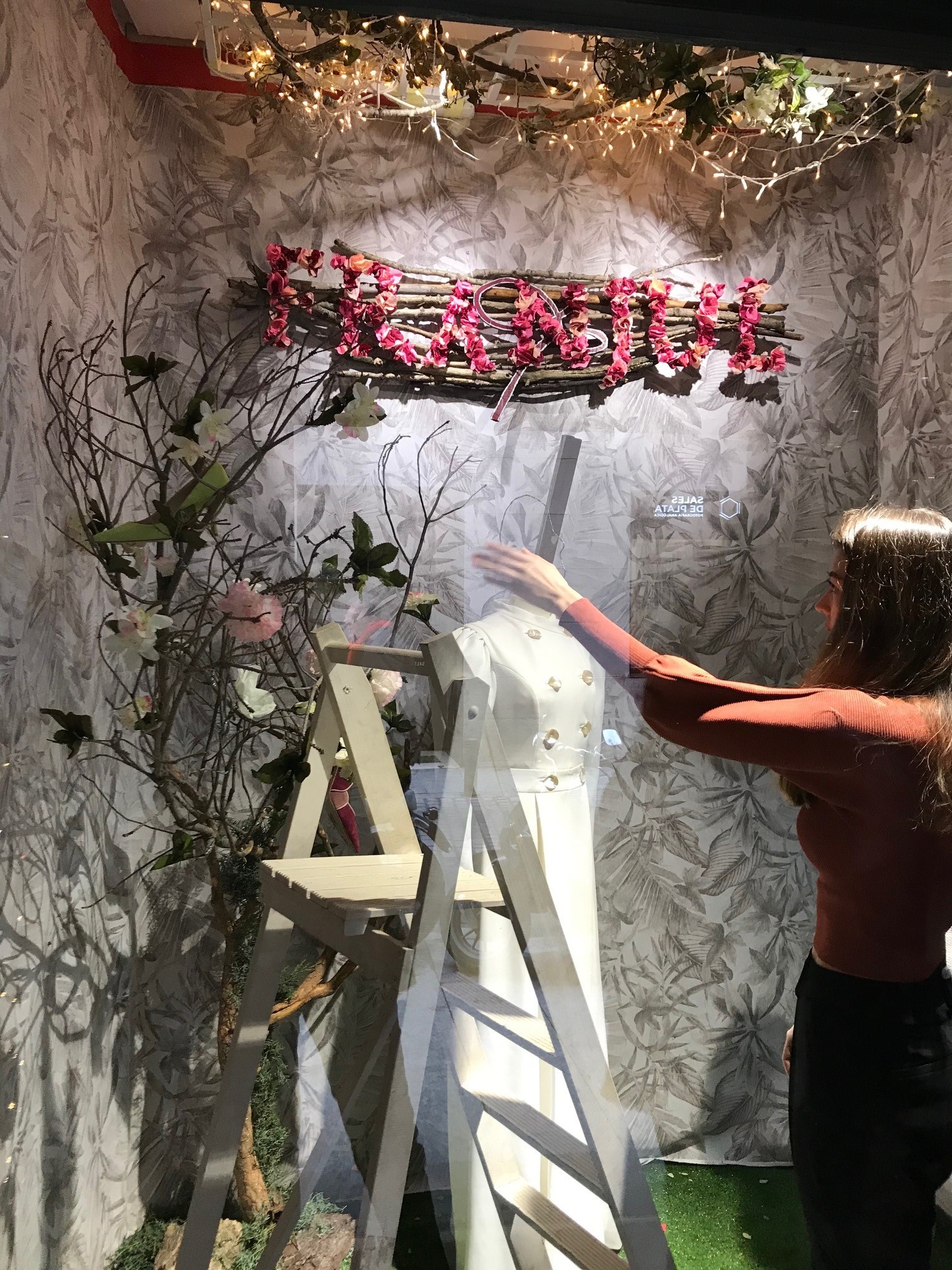 Esta adjudicación se hace en los primeros días de enero y los alumnos tienen que preparar el proyecto y montarlo para que al inicio de MBFWM. El escaparate creado por los alumnos de Moda de Nebrija incluía diferentes marcas del Barrio de las Letras, como Calzados Franjul, Capas Seseña, The Concrette y Pilar Dalbat. El grupo de alumnos fueron a cada una de las tiendas, y tras elegir la temática del escaparate, eligieron la ropa y accesorios.