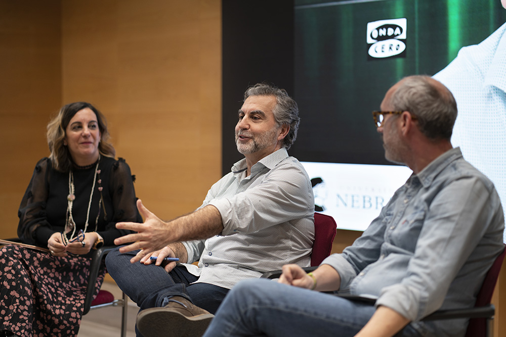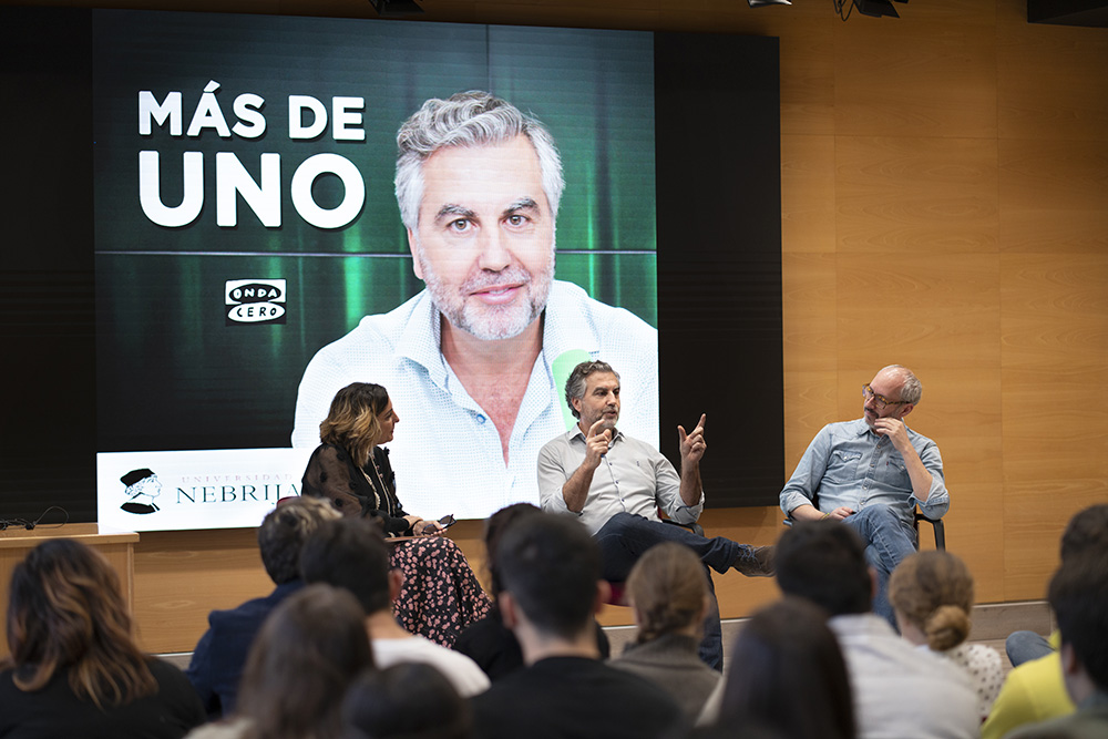 De lo que se puede decir de este encuentro con uno de los periodistas radiofónicos de referencia en nuestro país… que el acto se celebra en las instalaciones de Atresmedia y que, entre otros asuntos, el debate transita por la ficción sonora, el humor en las ondas, el futuro de la radio y la relación entre esta y la televisión. Los profesores de la Universidad Nebrija Eduardo Castillo y Laura M. Otón moderan y conceden el turno.
