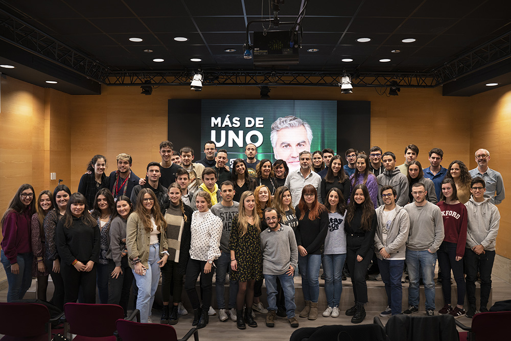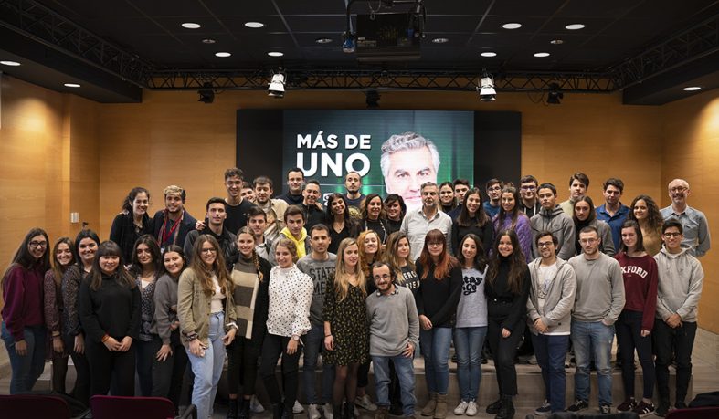 Todo empieza con un pacto. Carlos Alsina, director y presentador del matinal de Onda Cero Más de uno, pregunta a los alumnos de la Facultad de Comunicación y Artes si quieren que el encuentro trascienda a través de las redes sociales y otros medios o que el intercambio de ideas quede restringido a lo privado. Los estudiantes votan por esta segunda opción y los móviles duermen olvidados en los bolsillos y las libretas quedan vacías.
