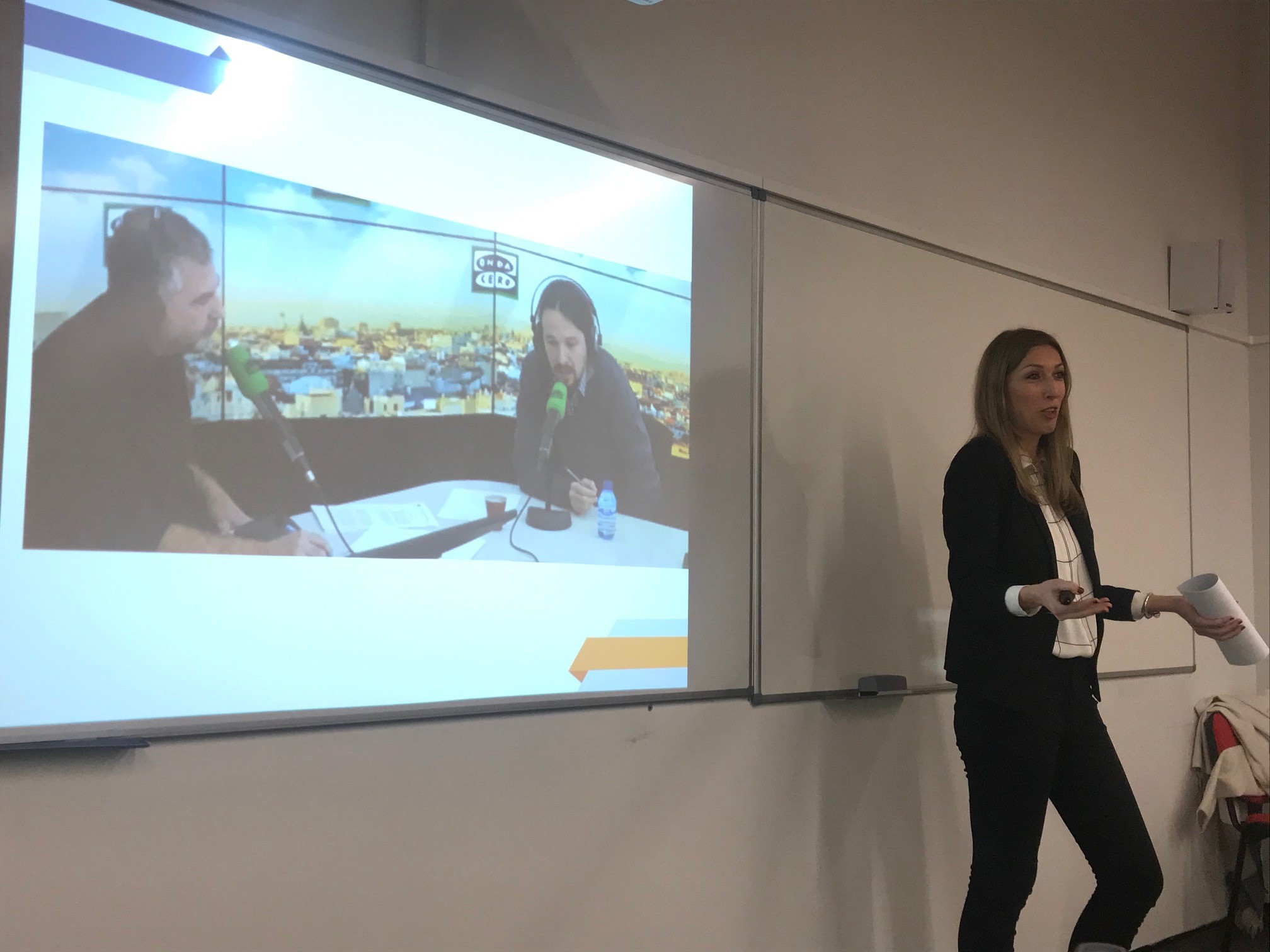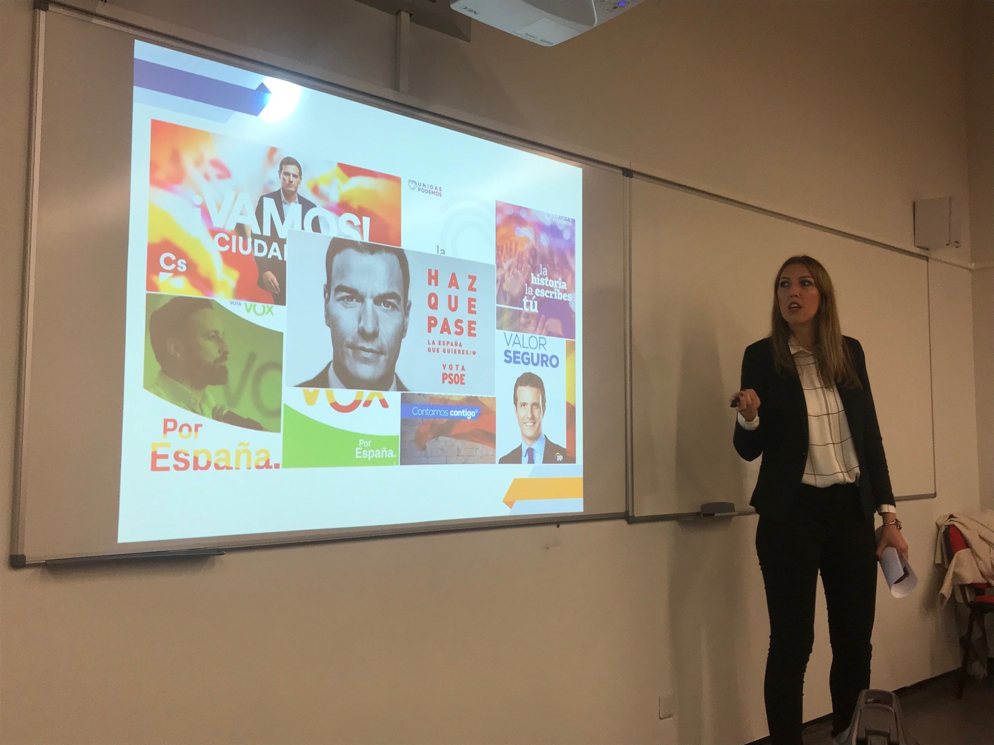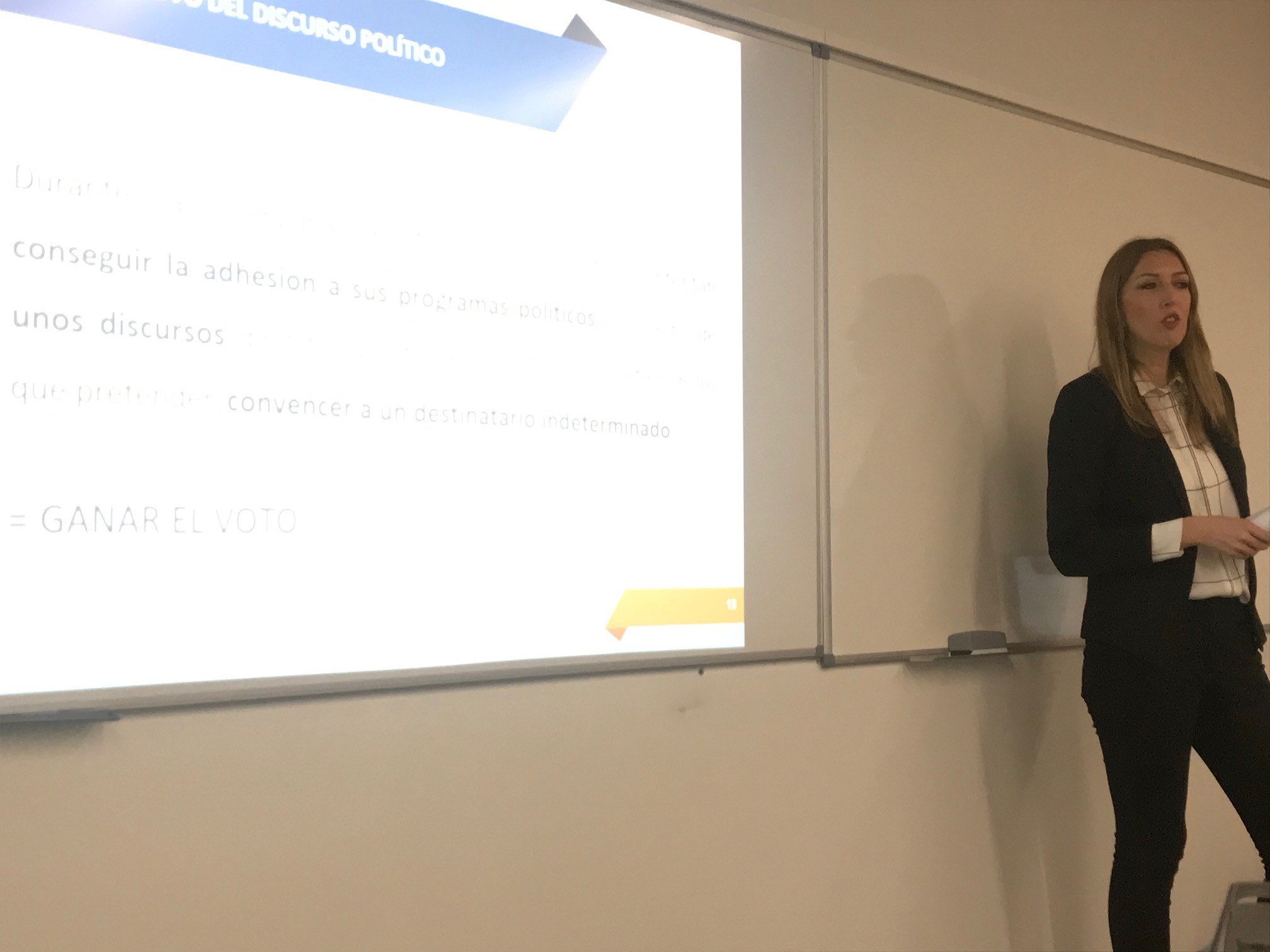 Otra pieza clave en este ámbito son los medios de comunicación. Ya que el principal objetivo a la hora de organizarlos es su repercusión mediática, todo está pensado para conseguir la mejor cobertura posible, con todo lo que esto conlleva: discursos perfectamente estudiados, comunicación no verbal, dresscode, tono del mensaje, público, protocolo, sentido del humor, etc. Una ponencia muy interesante en la que la experta compartió con los alumnos su experiencia en el ámbito, las claves y últimas tendencias en la organización de eventos políticos.