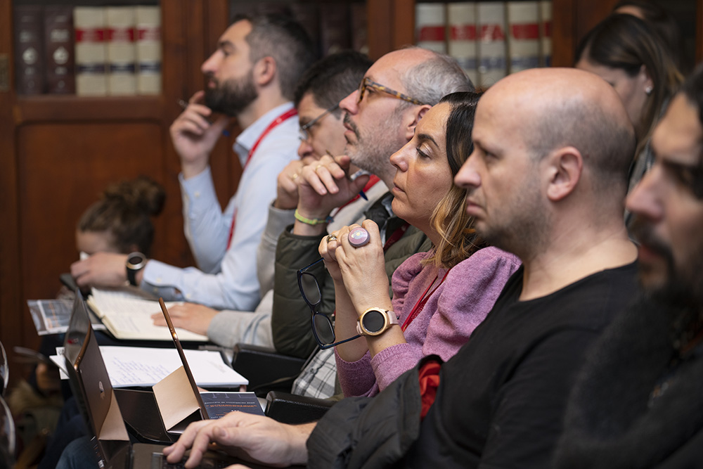 El investigador y profesor de la Universidad Nebrija Luis Miguel Pedrero presentó la primera mesa redonda denominada La detección de noticias mediante IA (inteligencia artificial). Para enmarcar el debate y centrarlo en un intercambio práctico de ideas, Pedrero afirmó que “más allá de plantear un futuro de robots que remplacen a los profesionales de periodismo, resulta necesario aprovechar las herramientas de la inteligencia artificial para analizar una compleja realidad”. Para su colega de la UAB, Cristina Pulido, la tendencia internacional ya responde a unos equipos mixtos de humanos y sistemas de inteligencia artificial y a un diálogo “continuo” entre los ingenieros, los periodistas y los investigadores.