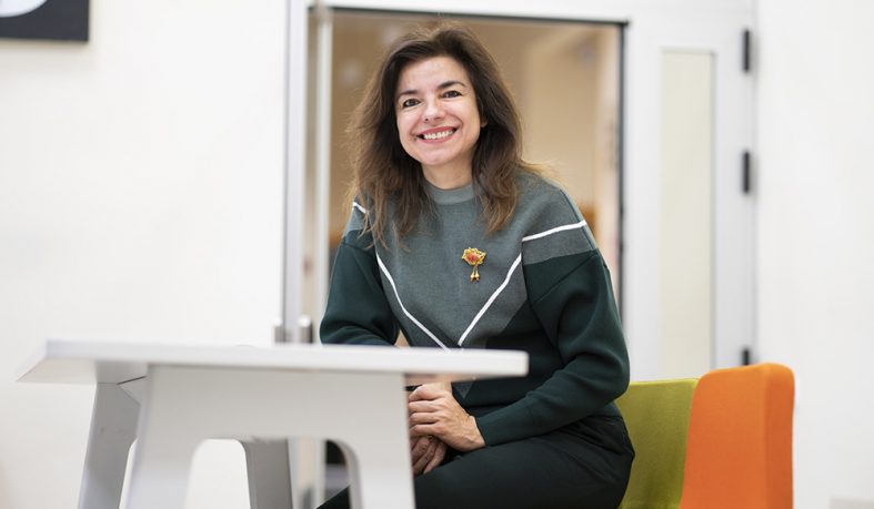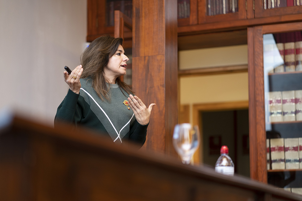 La artista Alicia Framis pasea por nuestro Campus de Princesa con la misma naturalidad con la que transita por las distintas disciplinas del arte. Nacida en Barcelona, la arquitectura, el diseño, moda o el “performance” forman parte de su obra, desarrollada en su mayor parte entre España y Holanda. Una obra en la que el compromiso social con temas como la igualdad de género o la lucha contra el racismo han estado siempre presentes.