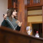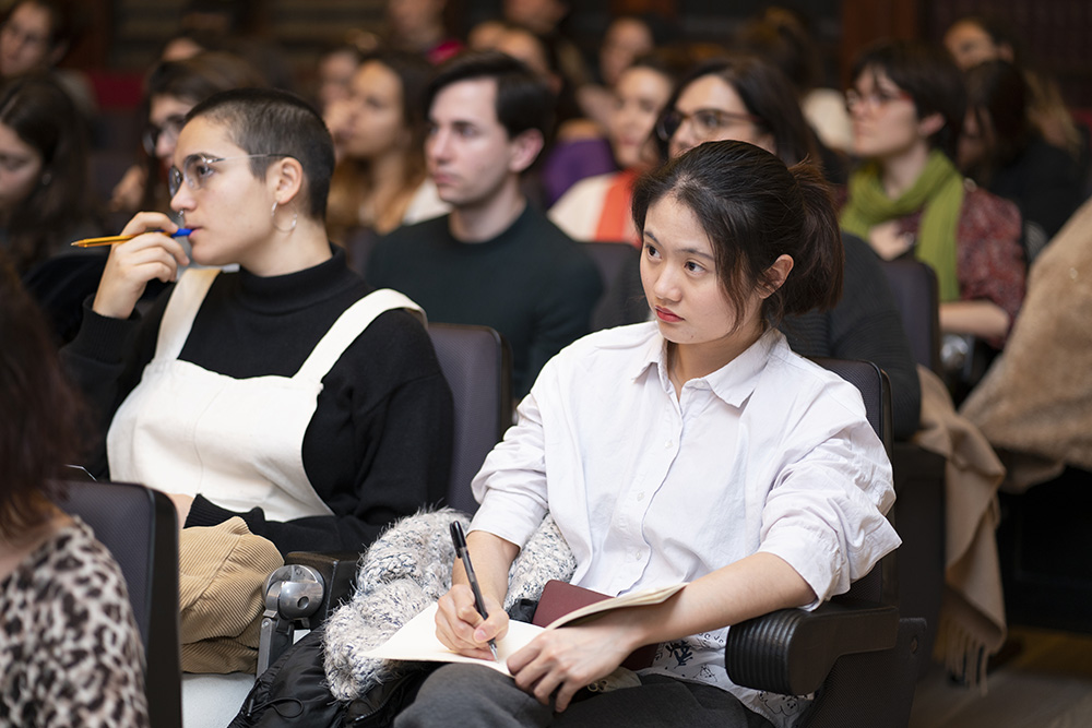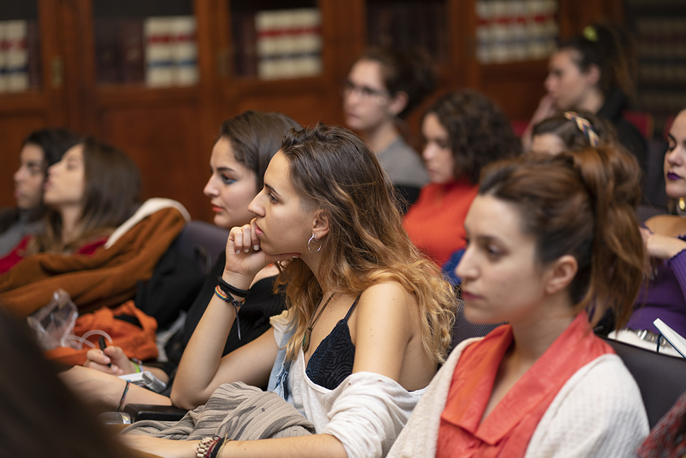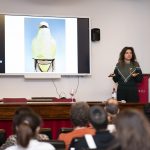 El pretexto para esta entrevista es el programa “Artista del año”, desarrollado por segunda vez desde el departamento de arte de la Facultad de Comunicación y Artes. La conferencia de hoy será solo el inicio de una serie de talleres que realizarán nuestros alumnos de los Grados en Bellas Artes, Diseño de Moda, Diseño Digital y Artes Escénicas. En todas las sesiones estará Alicia Framis como profesora y asesora para que los estudiantes “vivan una experiencia lo más cercana posible a lo que es ser un artista”, declara. El culmen tendrá lugar en la prestigiosa galería Juana de Aizpuru, donde las obras de los estudiantes se expondrán el próximo 30 de mayo.