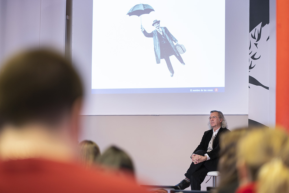 “La persona de referencia en España dando nombre a las cosas”, como lo presentó la profesora Gemma Barón, resumió en poco tiempo su “trenza de vida” en la que la extrañeza se enreda con su biografía personal y laboral. “Mis padres me entregaron intactas las metáforas de mi infancia. Yo me he apoyado toda mi vida en la lluvia, la gabardina o el paraguas para protegerme y abrigarme”, evocó.