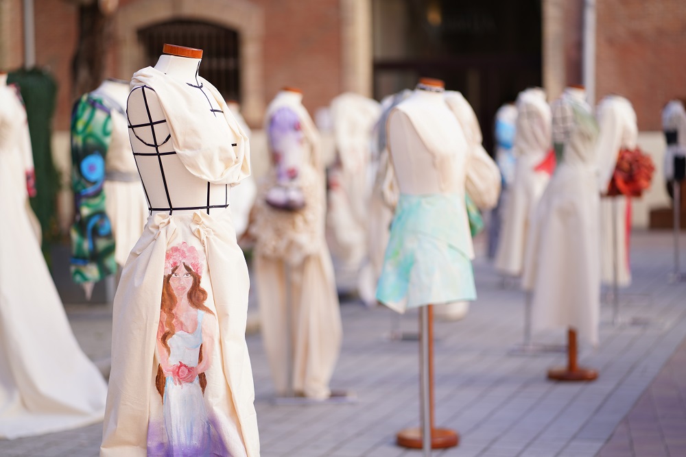 Otra de las actividades más originales de la Semana de la Comunicación y las Artes es la exposición interdisciplinar Fashionarte, puesta en pie por Sonia Lázaro, coordinadora del Grado de Diseño de Moda, y Daniel Villegas, director del Grado en Bellas Artes. 31 maniquíes se yerguen en el patio del Campus de Madrid-Princesa con los diseños de moda y artísticos elaborados en retor, un tejido fuerte y resistente confeccionado a partir del algodón. “Convertidas en improvisados lienzos, los estudiantes de primero de Bellas Artes y de Moda han intervenido estas piezas con motivos de la naturaleza, el fuego, la vida después de la muerte, etc.., inspirándose en las diosas griegas de la triada: Hécate, Deméter y Perséfone. Posteriormente, y aplicando la técnica de moulage los estudiantes de segundo y tercer curso de moda han convertido estos lienzos en sus propias propuestas creativas”, subraya Sonia Lázaro.
