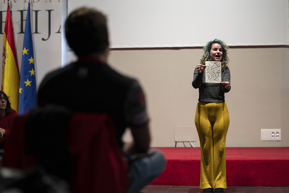 Laura Duhalde ha explicado que “el taller lo hemos planteado pensando en cómo podemos acceder a esa parte desconocida. Hay aspectos de nosotros que son desconocidos y que surgen en distintas circunstancias”. Como ambas han dicho “el inconsciente se manifiesta a través de símbolos o sueños, pero también podemos hacer un trabajo consciente y traducirlo a través de emociones”. Para ello han realizado distintos ejercicios durante las sesiones con un texto de base con fuertes personajes, pero que permite la improvisación.