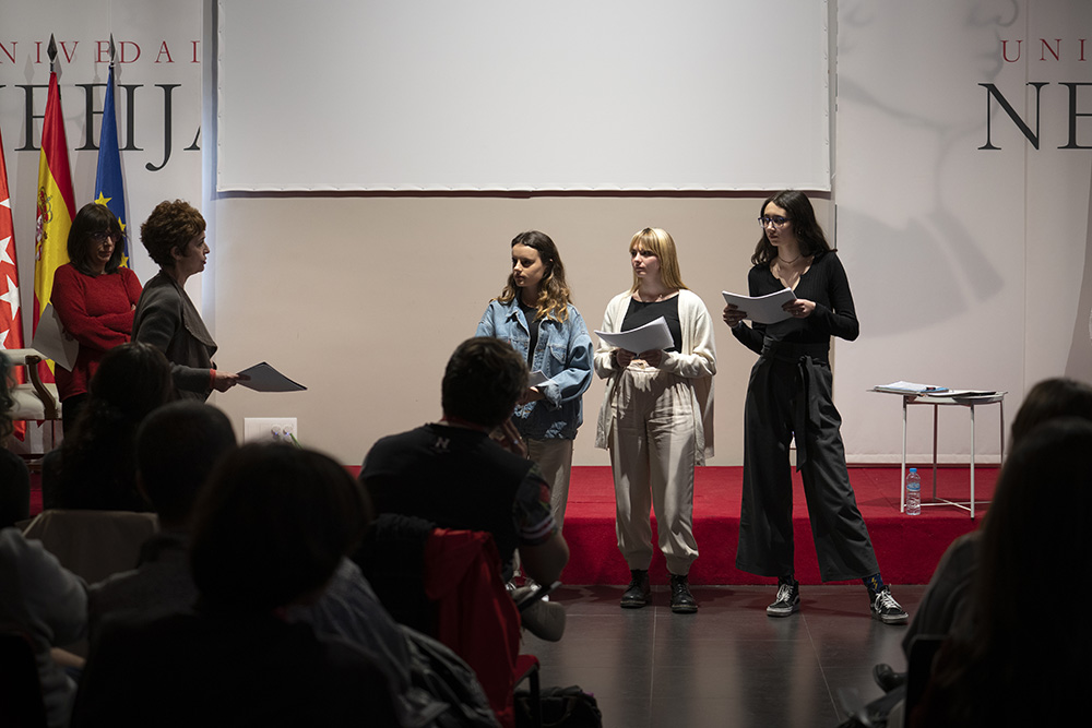 Los alumnos también han mostrado ejercicios en los que no interpretaban el texto, sino que con mímica han transmitido lo que querían expresar relacionándose como lo harían los personajes.