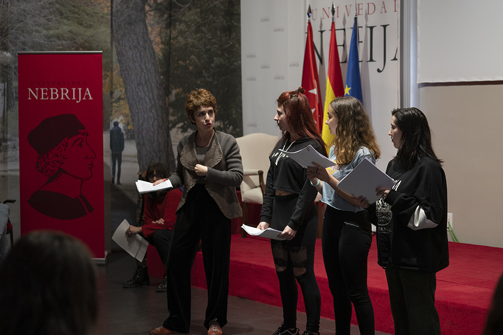 Durante la Semana de la Facultad de Comunicación y Artes los alumnos han interpretado una muestra con los distintos ejercicios que han realizado durante las sesiones para mostrar este método de trabajo. Adriana Ozores ha explicado que en el taller “crean las herramientas como actores para sacar del inconsciente lo que necesitamos para el personaje que representamos”.