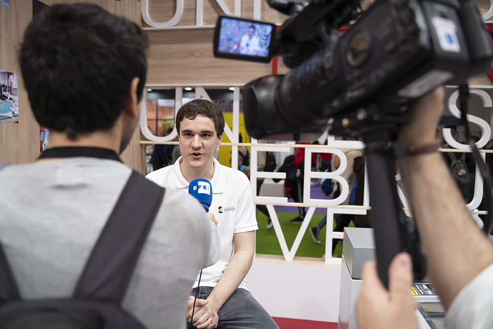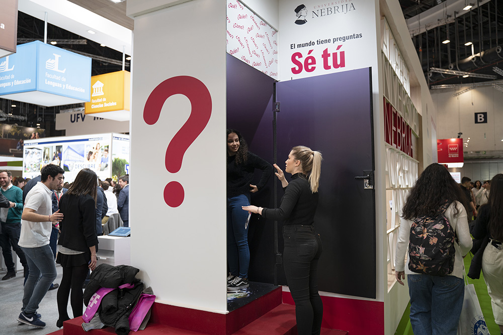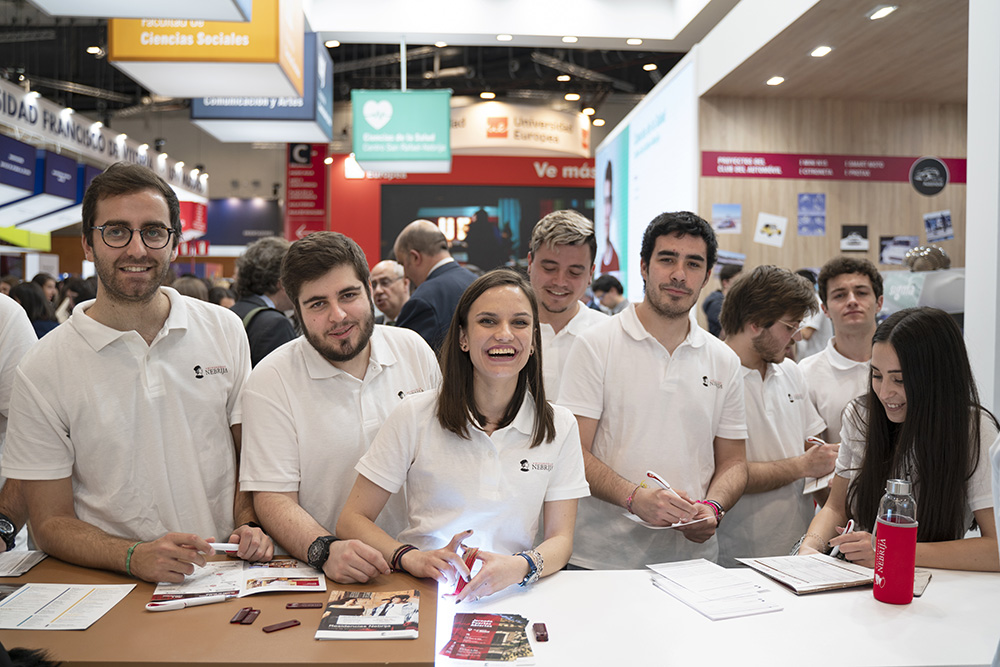 La Universidad Nebrija pone a disposición de los visitantes de Aula (Salón Internacional del Estudiante y de la Oferta Educativa) el stand 12C09 en el Pabellón 12 de Ifema para acercar sus propuestas educativas más innovadoras. Del 4 al 8 de marzo, la Universidad muestra cómo todas sus titulaciones, respaldadas por los más exigentes rankings, se complementan con los valores E-ETI –empleabilidad, exigencia académica, transversalidad e internacionalización. La Facultad de Comunicación y Artes con, su pionero doble grado de Artes Escénicas y Comunicación Audiovisual, y la Escuela Politécnica Superior, definida por su director Jordi Viñolas como “un lugar fértil para sembrar ideas innovadoras”, son sólo dos de los argumentos para estudiar en la Universidad Nebrija.