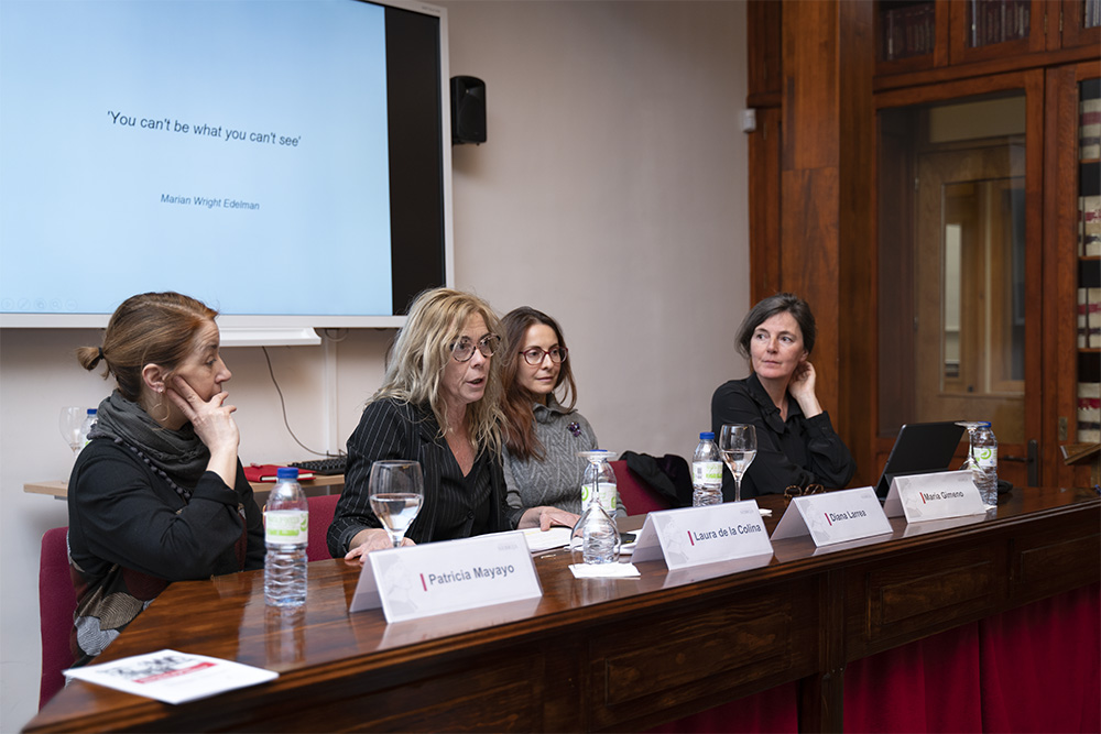 El compromiso y la reivindicación de la mujer en el pasado y el presente de la historia del arte fue el hilo conductor de la mesa redonda organizada por la Facultad de Comunicación y Artes dentro del primer día de las Jornadas de mujeres para quitarse el sombrero, organizadas por la Universidad Nebrija y promovidas por Rocío Santamaría, responsable del Centro de Escritura Nebrija. Las profesoras Laura de la Colina y Patricia Mayayo y las artistas María Gimeno y Diana Larrea argumentaron sobre el panorama de “desigualdad” entre hombres y mujeres en el campo artístico profesional.
