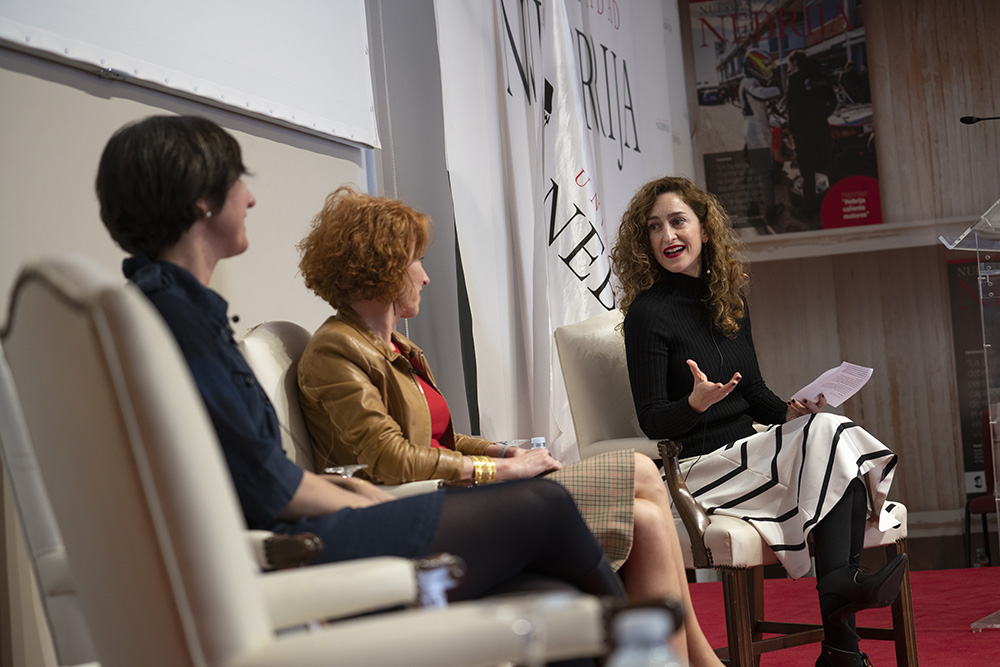 María Gil, directora de Comunicación de la Universidad Nebrija, moderó la tercera mesa redonda de mujeres profesionales, compuesta por la científica del CSIC Marta Nieto y la periodista Gloria Lomana, autora de El fin del miedo. Voces en el año del feminismo y presidenta de 50&50 Gender Leadership Advisory.