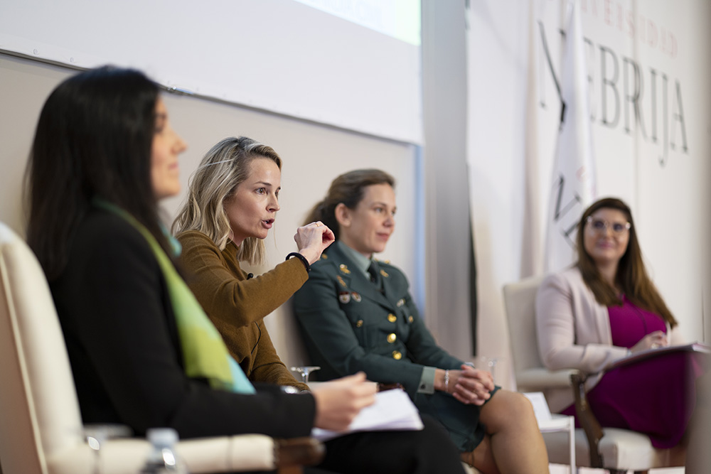 María Eizaguirre, editora de Televisión Española; Nuria Pizarro, directiva de Telefónica; y Amanda Cohen, magistrada del Tribunal Superior de Justicia de Madrid protagonizaron la segunda mesa redonda de la jornada Nebrija sobre la mujer, moderada por la profesora Paula Rodas.