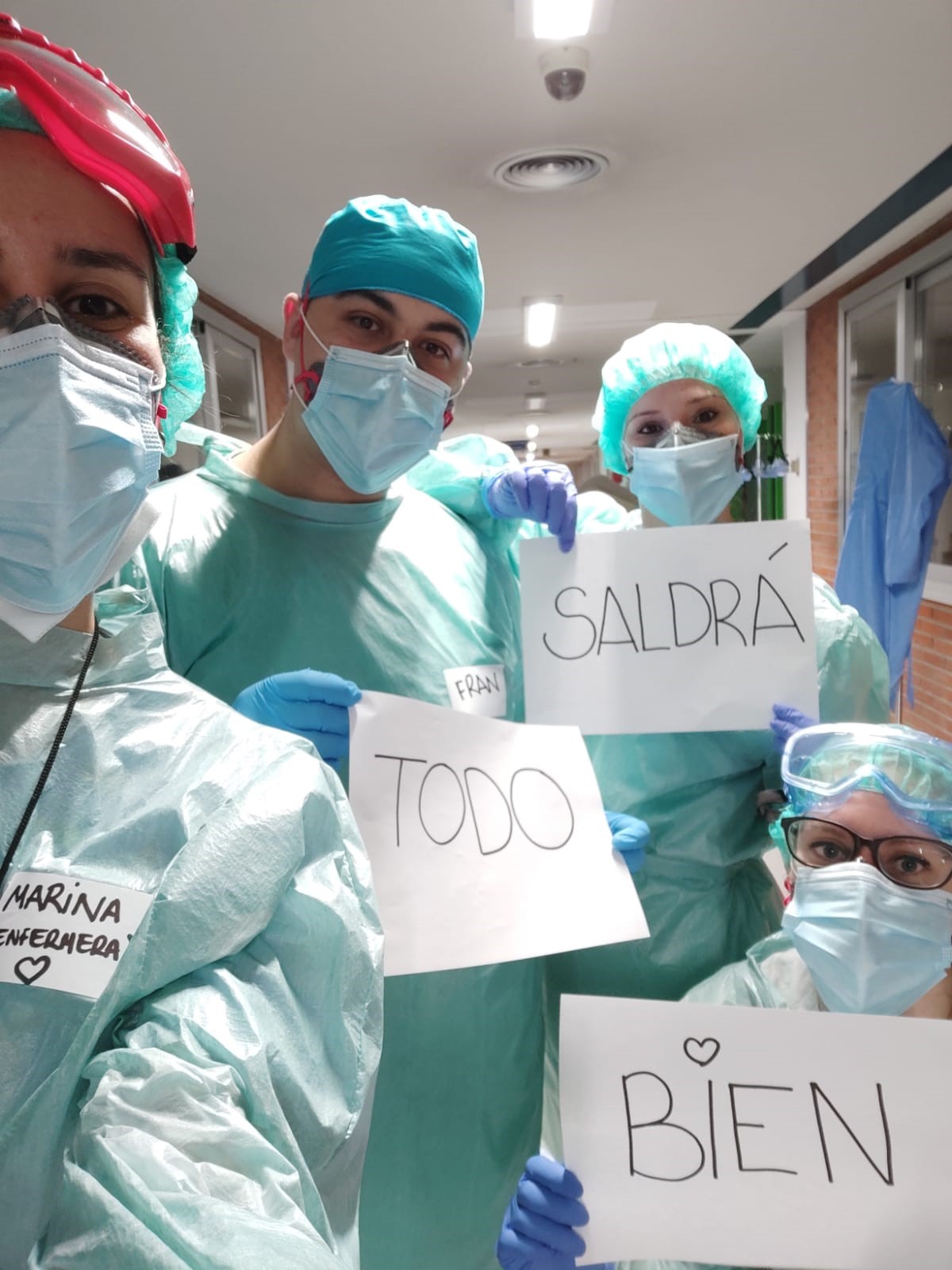 Francisco José García: “Todo Saldrá Bien, de verdad que ocurrirá. No salgas innecesariamente a la calle. Comprad pan para varios días y congeladlo. Respetad las normas y lavaos las manos. Nosotros no estamos luchando por salvar al máximo número de personas para volver al punto de partida. No sirve de nada ponerte los guantes y tocar el medio externo y tocarte la cara con los guantes. Las mascarillas tienen una banda de metal que se ajusta a la nariz, tápatela cuando vayas a comprar. Si te asfixias con la mascarilla, como me han dicho, imagínate cómo estamos los que trabajamos hasta diecisiete horas al día. Hay que tener conciencia y ser prudente”.