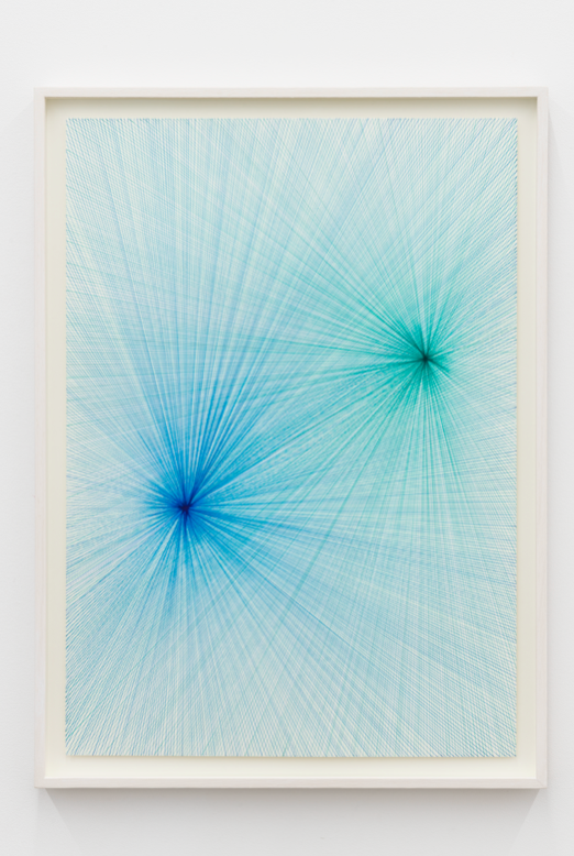 En Two Light Beams (2017) el artista se impone a sí mismo una serie de limitaciones técnicas y cromáticas donde utiliza los colores más habituales de la oficina (rojo, azul y verde, que al superponerse generan tonalidades casi negras) y repite una serie de líneas mediante un único patrón que puede generar ciertas irregularidades y cuyas interferencias visuales crean un efecto muaré, así como da pie a generar todo tipo de asociaciones vinculadas a un solo punto de partida donde a su vez confluyen las líneas dibujadas.