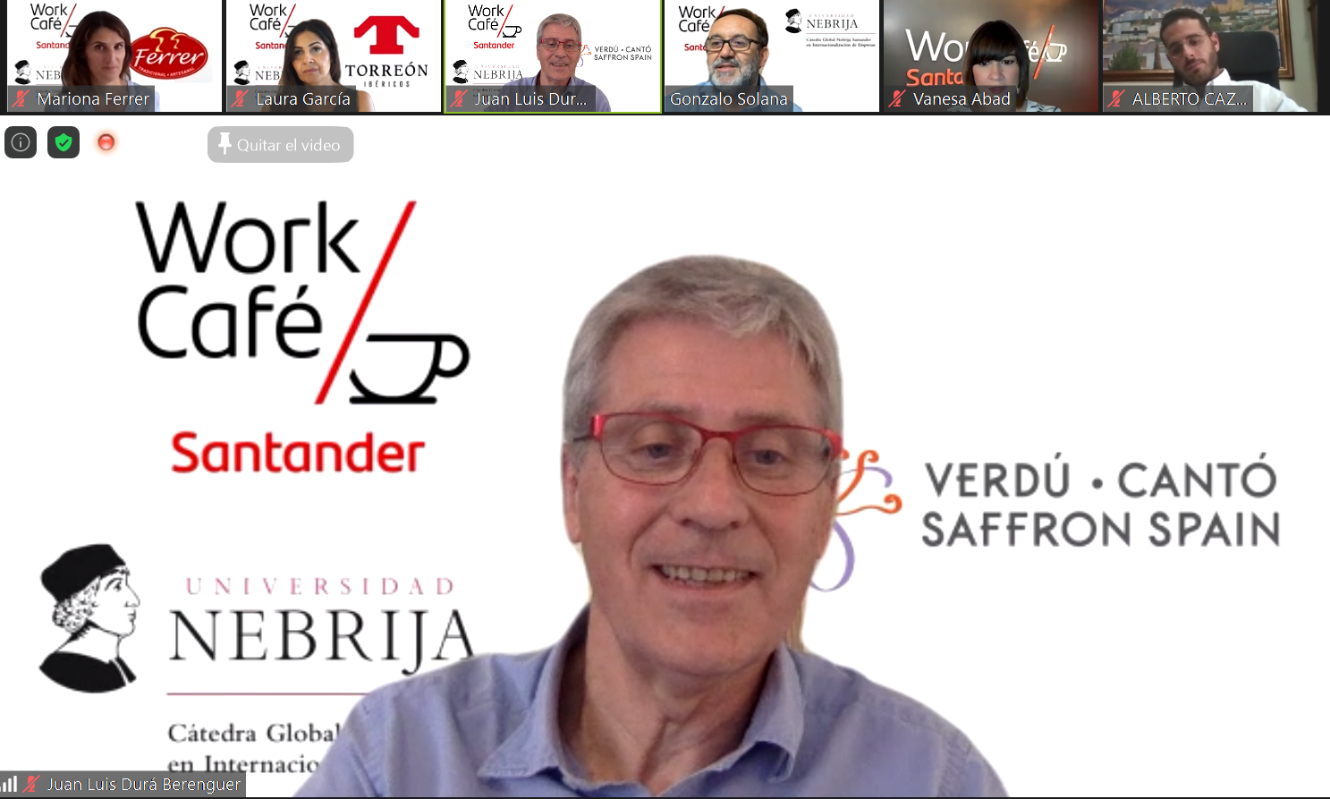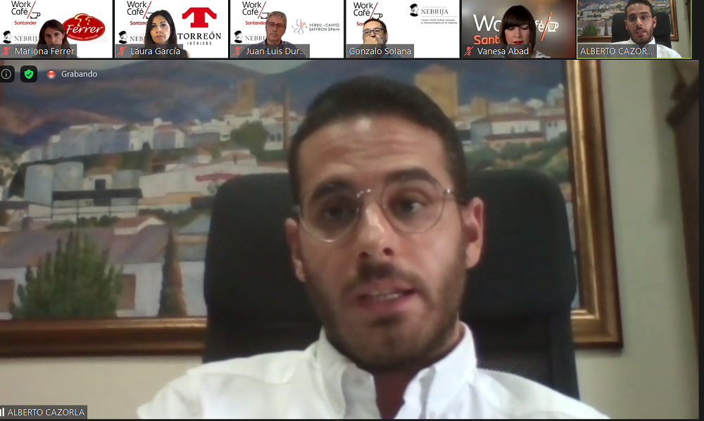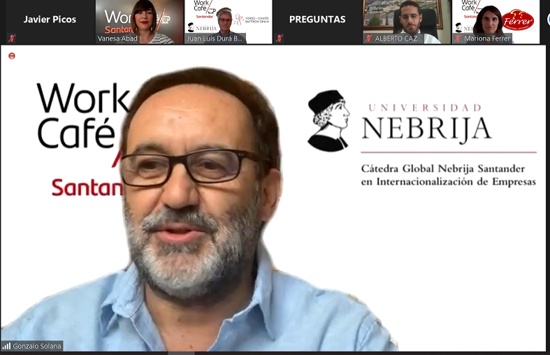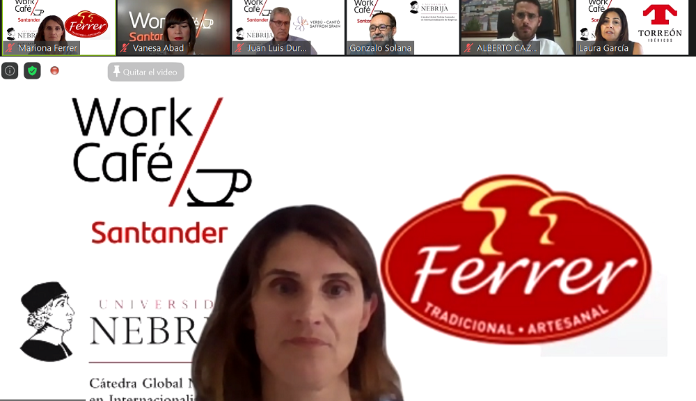 La Cátedra Global Nebrija Santander en Internacionalización de Empresas, Santander Smart Talks y Work Café Santander mostraron, a través de una jornada virtual, cuatro ejemplos de empresas familiares españolas – Verdú Cantó Saffrón Spain, Conservas Ferrer, Ibéricos Torreón Salamanca y Mueloliva- que destacan por sus estrategias en el comercio internacional. Precisamente estas compañías protagonizan los Cuadernos de internacionalización de empresas, editados por la Cátedra, en colaboración con FIAB (Federación Española de Industrias de la Alimentación y Bebidas) y que se pueden descargar en este enlace.