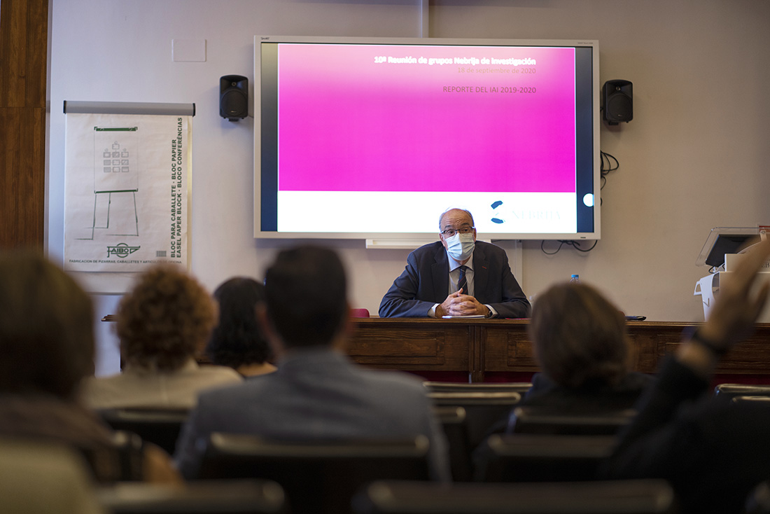 La investigación es uno de los pilares fundamentales de la Universidad Nebrija con el que se quiere diferenciar y dejar su huella en la sociedad. En la reunión de los grupos de investigación que organiza anualmente el Vicerrectorado de Investigación, el vicerrector Álvaro Bustinduy repasó los resultados logrados durante el pasado curso 2019-2020 y los objetivos planteados para el nuevo curso.