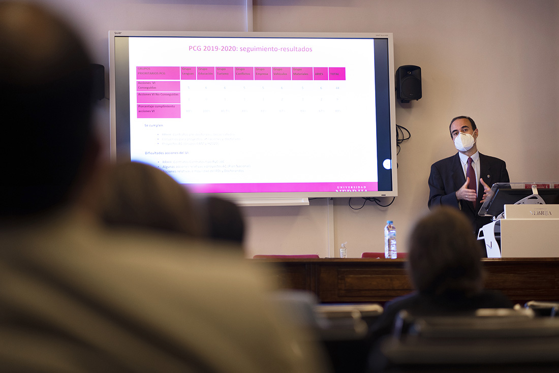 Como resumen de los logros obtenidos durante el último curso, Álvaro Bustinduy aseguró que se ha cumplido un 83% de las acciones de los objetivos. “La reputación a nivel de investigación de Nebrija es cada vez mayor, los investigadores nos buscan para realizar aquí su carrera académica”, aseguró. “Todos tenemos que buscar en Nebrija un desarrollo profesional y personal y esa vinculación con la Institución es mayor en Nebrija que en otros sitios”, finalizó el vicerrector.