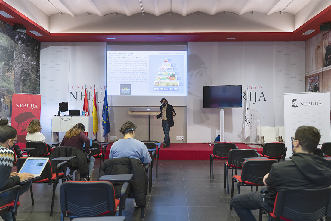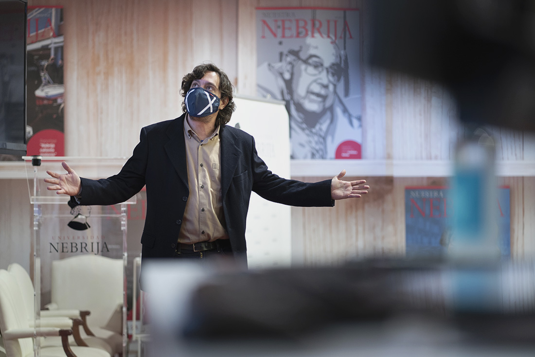 “El inmaterial es el menos conocido de los patrimonios, pero forma parte del legado que nos hace ser como somos”. Desde el comienzo de su conferencia en modo híbrido –con alumnos en el salón de actos del Campus de Princesa y otros siguiendo la clase en otras dependencias-, Alejandro Beltrán, profesor del Departamento de Humanidades, Historia, Geografía y Arte de la Universidad Carlos III y docente de la Universidad Nebrija, incidió en unas manifestaciones culturales que hay “que proteger y mantener”. Con el fin de garantizar ese objetivo, la UNESCO aprobó la Convención de 2003 para la Salvaguarda del Patrimonio Cultural Inmaterial -también llamado patrimonio viviente-.