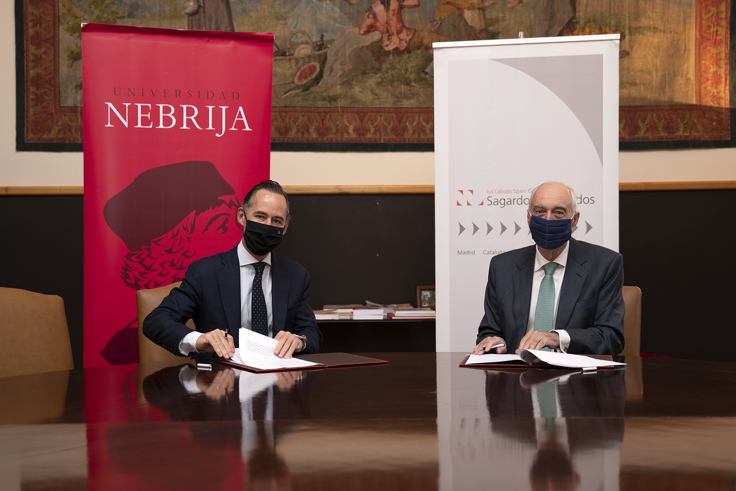 Sagardoy Abogados, a través de Sagardoy Business & Law School, y la Universidad Nebrija, a través de Nebrija Business School, han firmado un convenio de colaboración en programas académicos y de formación. Además de asesoramiento mutuo y programación de actividades, ambas entidades participarán en el desarrollo o perfeccionamiento de posgrados universitarios en el ámbito jurídico y de los Recursos Humanos, sin perjuicio de generar alianzas en otras áreas de interés común.
