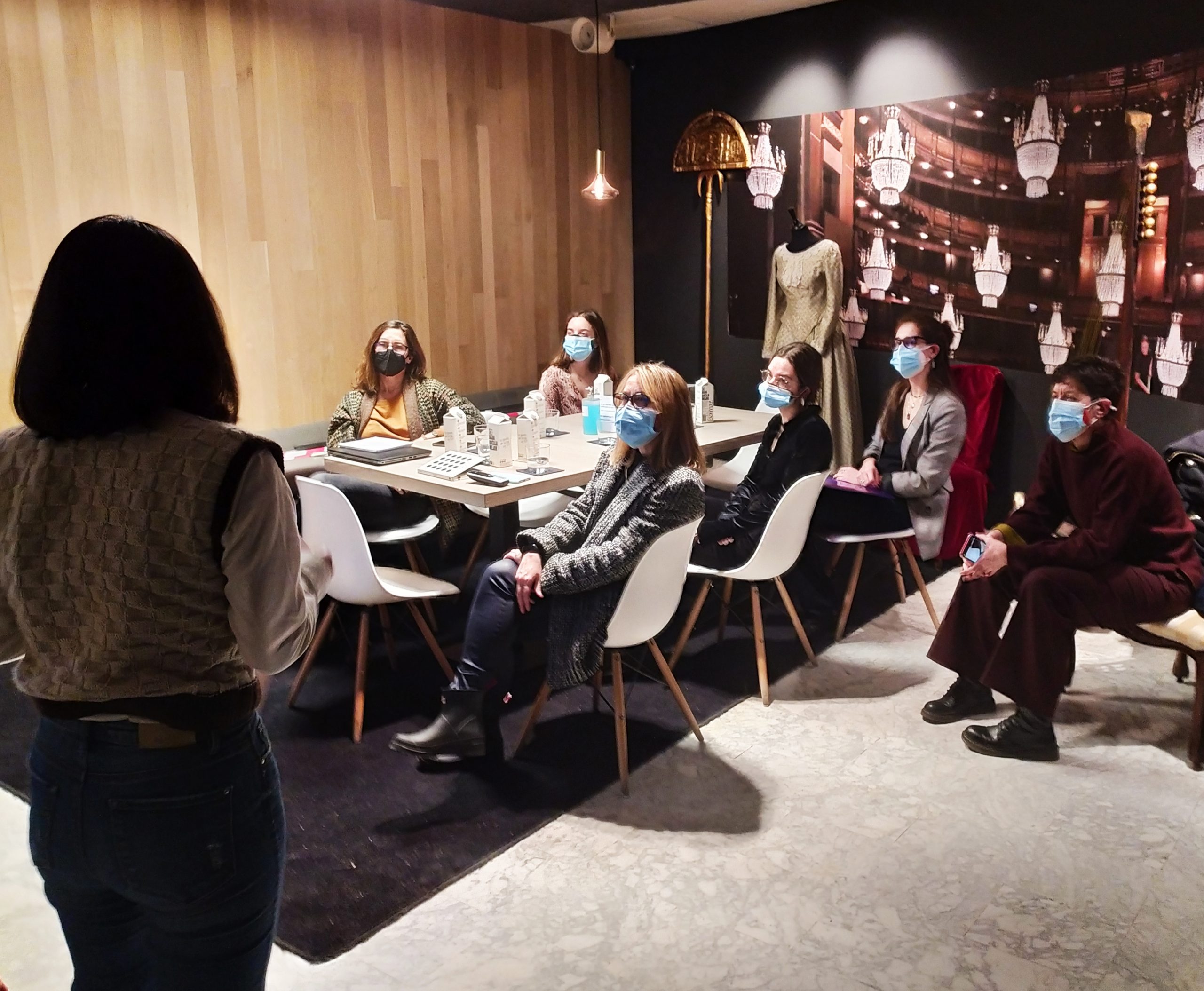 La directora de la Fundación Amigos del Teatro Real, Macarena De la Figuera, acompañada de Ana Uceta, adjunta Mecenazgo Privado, abrieron las puertas del Teatro Real a las alumnas, donde en un pintoresco reservado y acompañadas por Mar Ramos, coordinadora del grado en Diseño Digital, y de Pablo Álvarez de Toledo, director del Departamento de Artes, se desarrolló la fructífera sesión de trabajo, con su respectivo y necesario debate posterior.