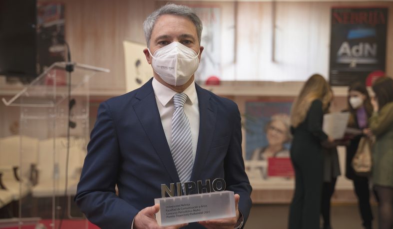 Los galardones NIPHO son uno de los actos más emblemáticos de la Semana de la Facultad de Comunicación y Artes de la Universidad Nebrija. Su decana, Marta Perlado, agradeció el trabajo de Marta Saavedra, recién nombrada vicedecana de la Facultad, y elogió tanto a los premiados -“por contar la verdad por encima de todo y de todos”- como el método learning by doing (aprender haciendo) de la Universidad Nebrija. Un sistema de enseñanza al que también se refirió el rector José Muñiz como uno de los valores generales y de empleabilidad de Nebrija. La pasión por el saber, la colaboración simbiótica entre universidad y empresa, la enseñanza híbrida y las acciones “innovadoras, creativas y disruptivas” fueron otras de las claves de la Universidad Nebrija abordadas por el rector.