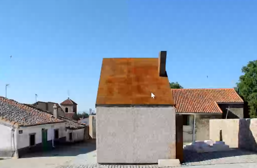El diseño singular, la tecnología eficiente y el confort emocional, las tres claves de Muka, también se aprecian en construcciones de otros puntos de la provincia de Ciudad Real, como en una vivienda inspirada por el Corral de Comedias de Almagro. Además de una casa en construcción en la localidad de Griñón donde prima el empleo de una celosía colocada a hueso (sin argamasa entre sus juntas) para que “la circulación de la luz cree una atmosfera agradable”, Moisés Royo mostró a los estudiantes otras intervenciones en la Sierra de Madrid, concretamente en Robregordo y en Lozoya. La primera se traduce en un kiosco con chapa perforada, que tiene una doble función: su continua ventilación, incluso cuando está cerrado, y la posibilidad de una realidad “tamizada” a los que miran desde dentro hacia el exterior. La segunda, la de Lozoya, es un trabajo en un cementerio, al que, “por mi vinculación con la arquitectura nórdica integro, al menos en su entrada, al paisaje”. En esta remodelación, Royo situó un banco, donde los habitantes del pueblo pueden descansar en su paseo, y una tapia baja. El arquitecto de Muka no quiso ocultar el cementerio a la sociedad, aunque tampoco se atrevió a abrirlo completamente: “Me quedé en un camino intermedio en esa relación entre la vida y la muerte”.