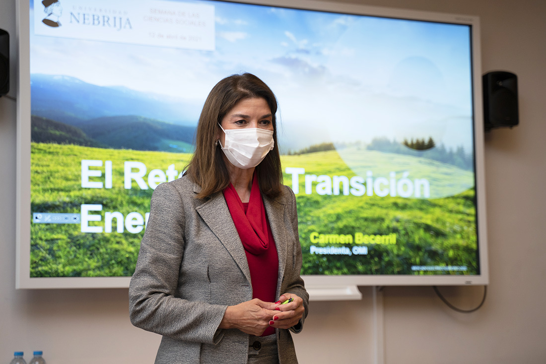 Desde el primer momento, la presidenta de la OMIE, presentada por Gonzalo Solana, director de la Cátedra Global Nebrija-Santander en Internacionalización de Empresas, y con 25 años de experiencia en su materia, se refirió a la energía como un tema de un impacto social “tremendo que determina un esquema de desarrollo social” y que va más allá de un sentido “abstracto”. “Cuando hablamos de transición energética, debemos darnos cuenta de que todos nos vamos a ver afectados y mediatizados”.