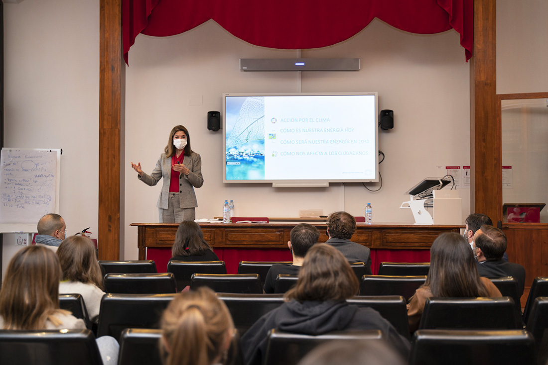 Energía eólica y solar, una red eléctrica que transita desde las grandes centrales a una red de muchos productores que reparten y comparten energía, consumidores activos y responsables frente a la reducción de CO2 y la irrupción de la digitalización, que informa en cada momento sobre los precios, son los componentes que, según Carmen Becerril, presidenta del Operador del Mercado Eléctrico (OMIE), conforman la transición energética que pronto fructificará en nuestra vida diaria. “En este mundo que está por venir, con sus luces y sombras, todo esto será realidad si se produce también el gran reto de la humanidad: almacenar energía eléctrica”, señaló Becerril, que intervino en la primera jornada de la Semana de la Facultad de Ciencias Sociales.