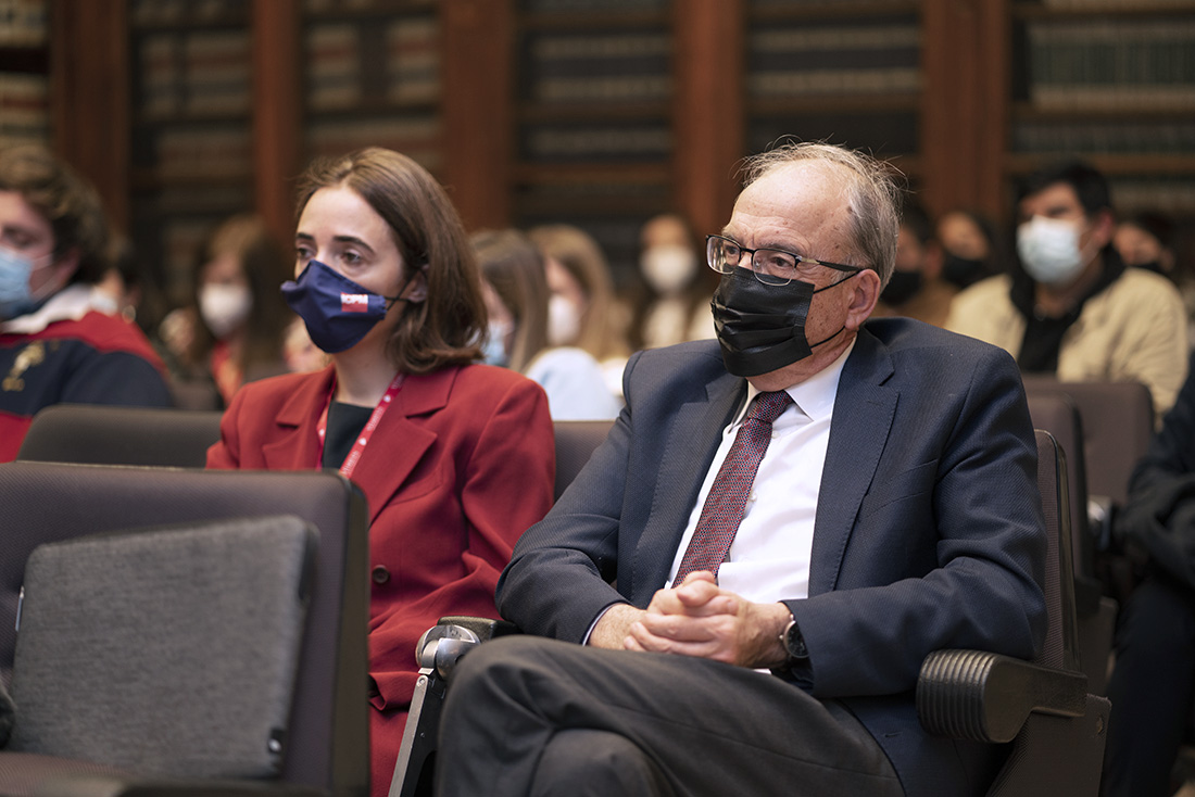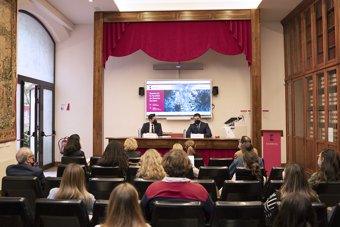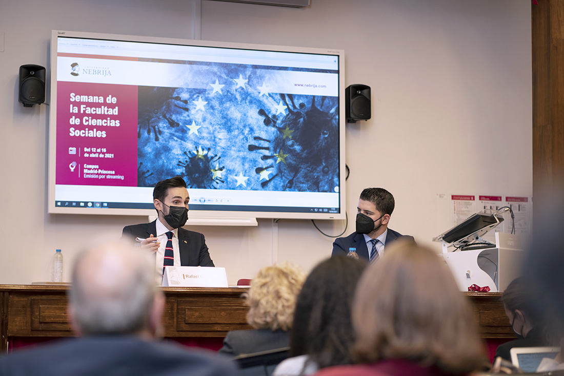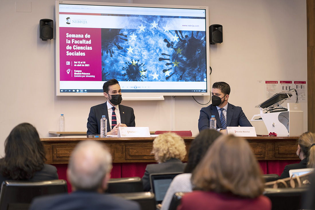 Acompañado en la mesa por Nicolás Marchal, coordinador del Departamento de Derecho y director del Máster en Análisis de Inteligencia y Ciberinteligencia de la Universidad Nebrija, y en el aula por el rector José Muñiz y la decana de la Facultad de Ciencias Sociales Ester Mocholí, Rafael Pérez afirmó que la crisis sanitaria “no nos desbordó” en el ámbito de la seguridad “porque teníamos claro ese concepto de seguridad humana y estábamos preparados con la declaración del estado de alarma donde la seguridad pública se puso al servicio de la salud”.