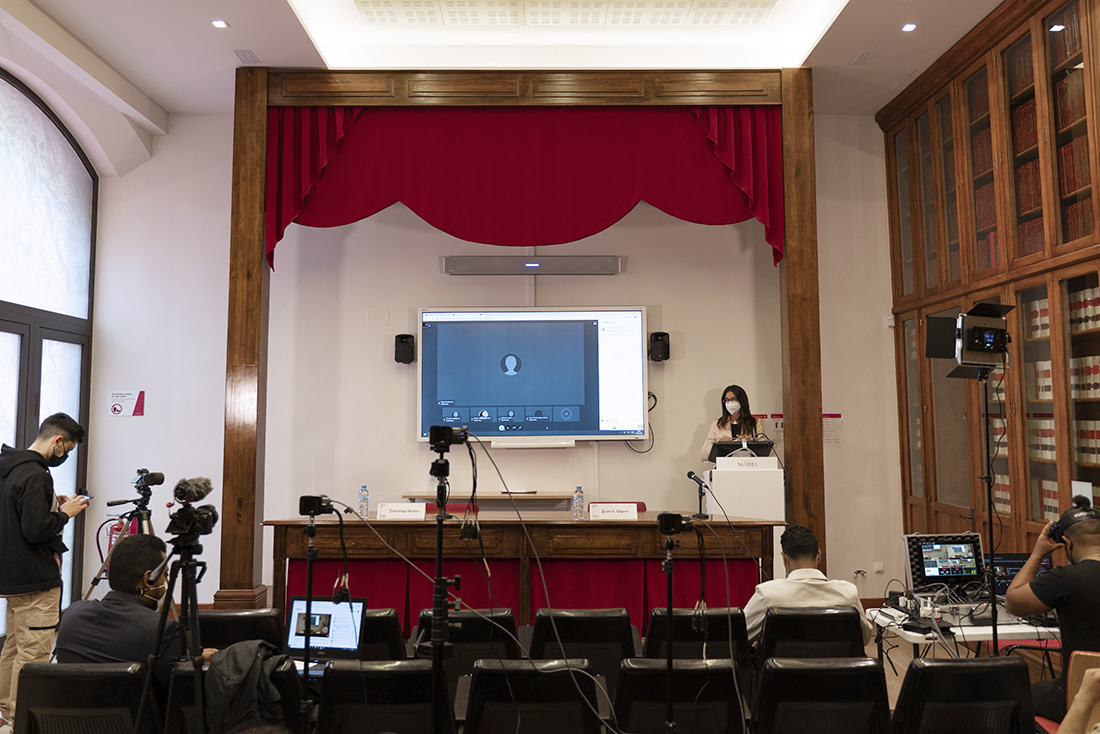 En la mesa redonda Rap y Reggeaton: la música como reflejo de la violencia y la represión de los ciudadanos, también estuvieron presentes Ester Mocholí, decana de la Facultad de Ciencias Sociales, y Luis A. García Segura, coordinador de la Cátedra Nebrija-Santander en Gestión de Riesgos y Conflictos (Universidad Nebrija).