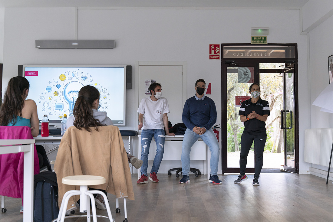 Carla Gutiérrez, entrenadora personal, y Elena Fernández, entrenadora de porteras del Atlético de Madrid y la Selección Española, también participaron en esta cita. En el campo del entrenamiento personal, Carla Gutiérrez explicó a los alumnos que “debes acoplarte a muchos perfiles distintos de clientes y entender qué necesitan y cuáles son sus objetivos”.