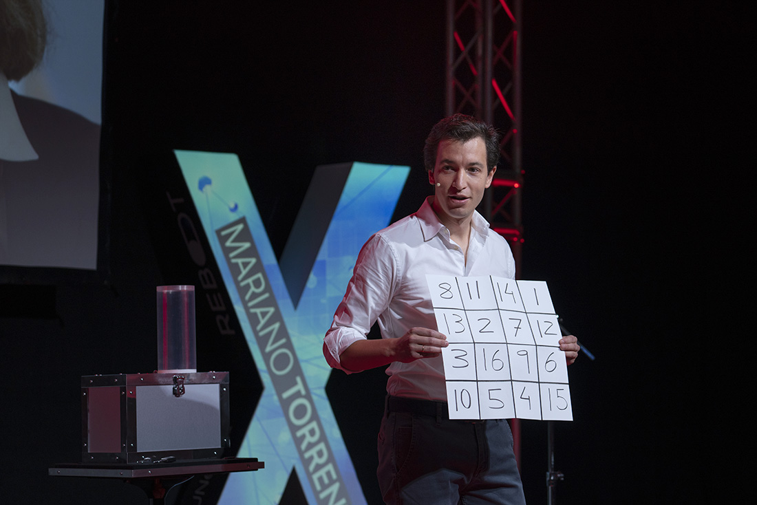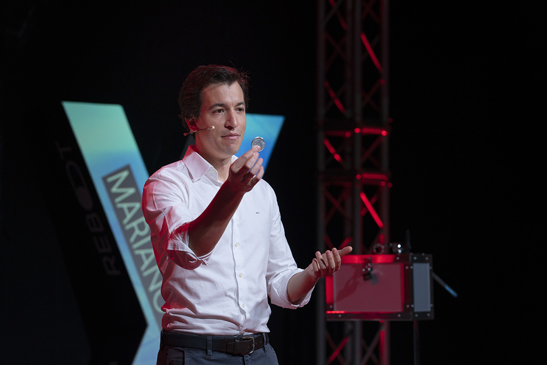 Mariano Torrente es ingeniero industrial y mago, y lo más sorprendente es que Torrente es capaz de encontrar las similitudes entre la magia y el mundo empresarial. En su charla en TEDxUNebrija compartió con los asistentes como el ilusionismo se sirve de los patrones de comportamiento para controlar la atención de su público, una herramienta que ya ha llegado al sector empresarial y tiene su aplicación para comprender la forma de comportarse de los clientes o los consumidores y poder llevar a cabo ciertas estrategias en busca de los objetivos de la empresa: “Las empresas pueden conseguir dirigir la atención del consumidor hacia ciertos puntos para sacar el máximo partido de sus estrategias”, aseguró Torrente.