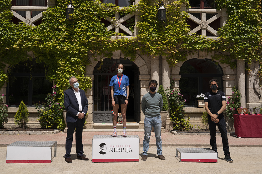 La entrega de Trofeos del XXV Cross y del Circuito Universitario de la Comunidad de Madrid 2020/21 estuvo a cargo de José Muñiz, rector de la Universidad Nebrija, Esteban Galindo Rodríguez, jefe de Servicio de Deporte Escolar de la Subdirección General de Programas de Actividad Física y Deporte de la Comunidad de Madrid, y David de la Fuente Franco, director del Servicio de Deportes de la Universidad Nebrija.