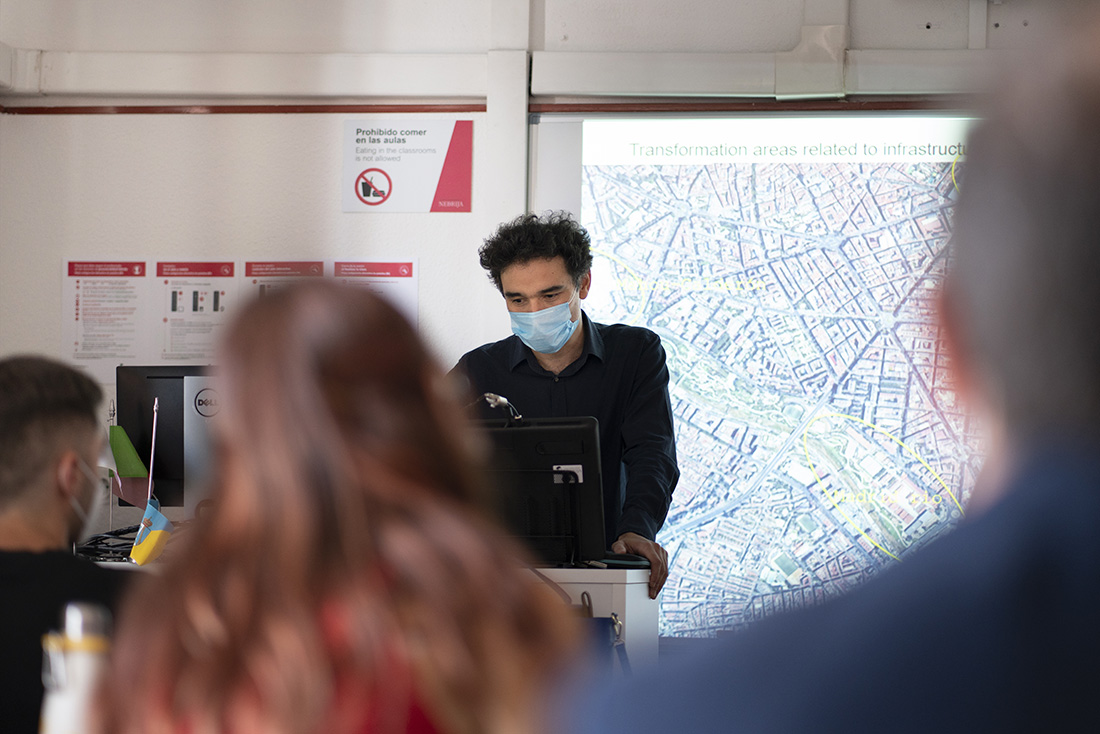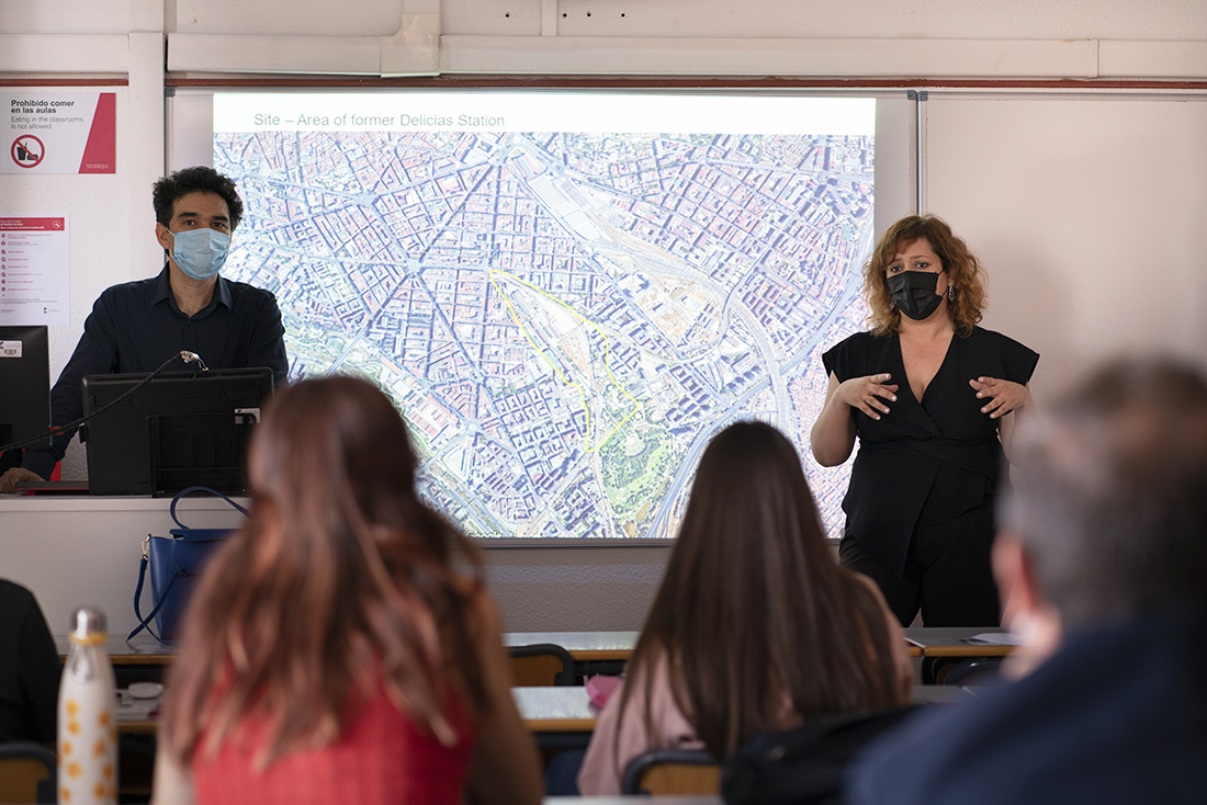 Un ejemplo de ello es el último proyecto llevado a cabo en el Taller Avanzado de Urbanismo del Máster en Arquitectura. Los alumnos de esta asignatura han realizado una investigación y un análisis sobre las áreas de oportunidad o espacios vacantes del área de Delicias, en Madrid, para realizar propuestas de diseño urbano y poder dar un nuevo uso a esos espacios que sea más útil para la sociedad. Estas propuestas se han hecho desde un” contexto de transición energética, estimulando nuevas alternativas a través de un desarrollo sostenible y productivo de estos espacios de oportunidad”, explican los profesores Alexandra Delgado, directora el Taller Avanzado de Urbanismo, Juan Tur y Edzo Bindels, arquitectos del estudio West 8 y también directores del Taller Avanzado de Urbanismo.